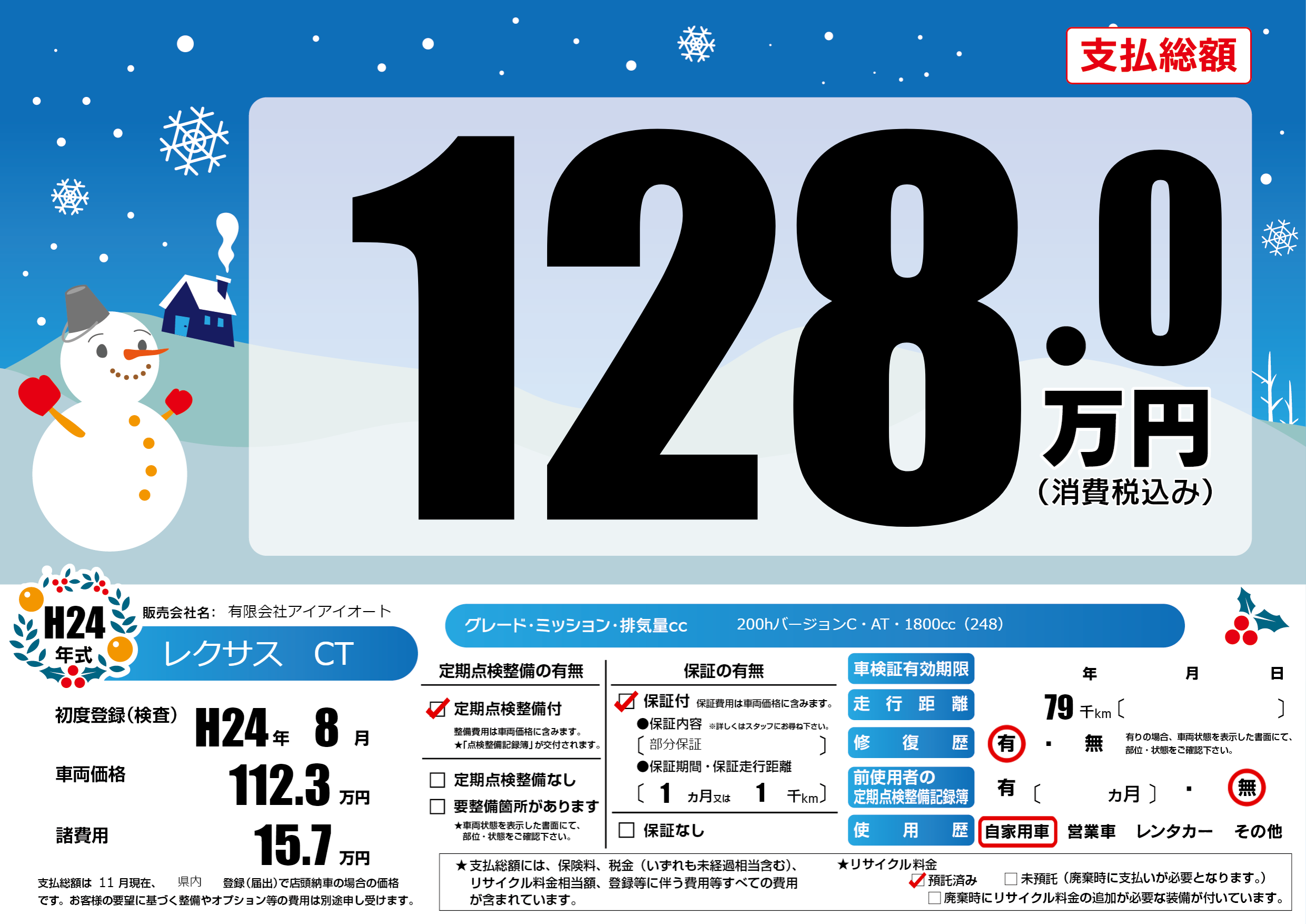 | 車名 | レクサス CT | グレード ミッション 排気量 |