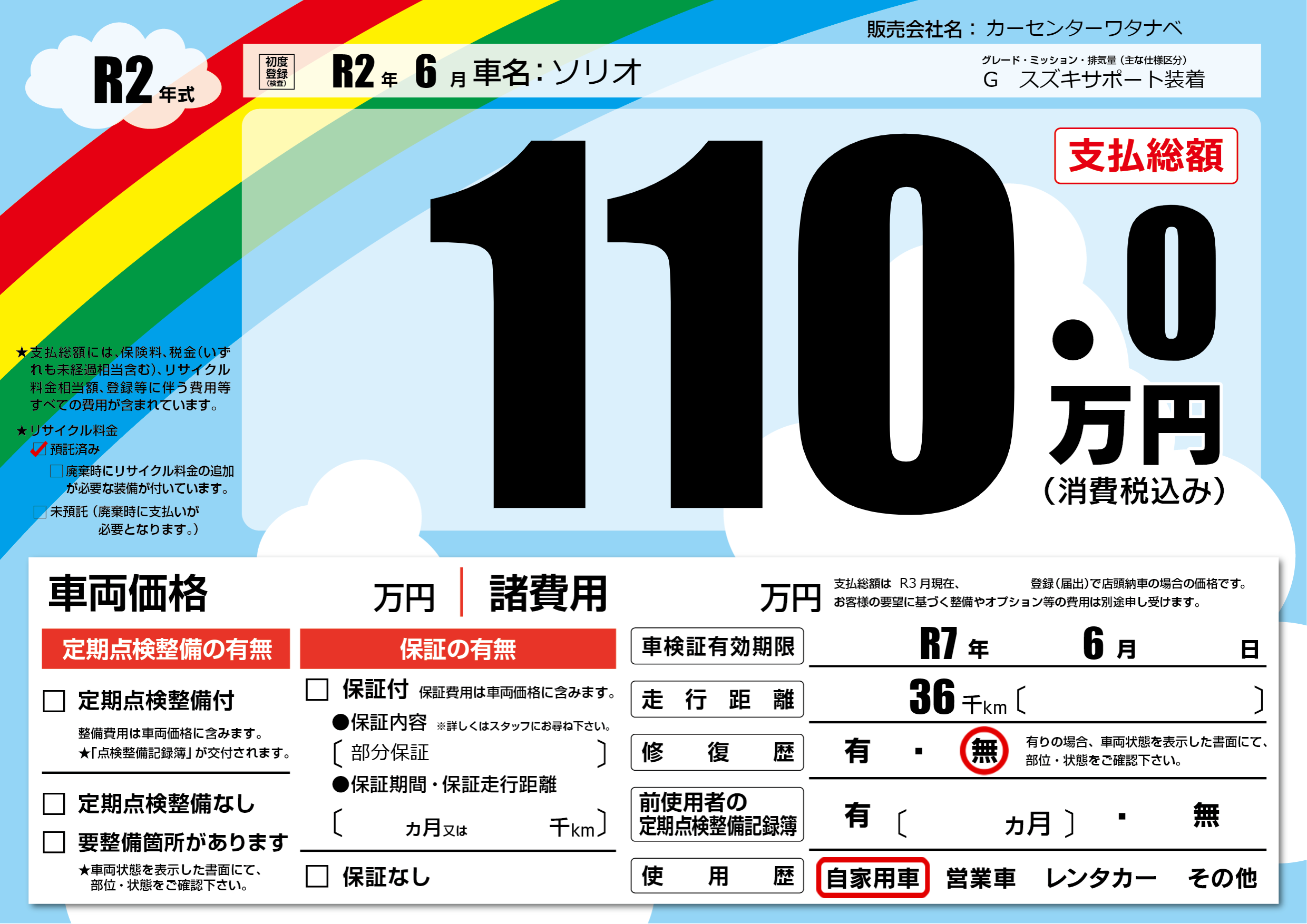 | 車検制限 | R7年 6月 - 日 | ||