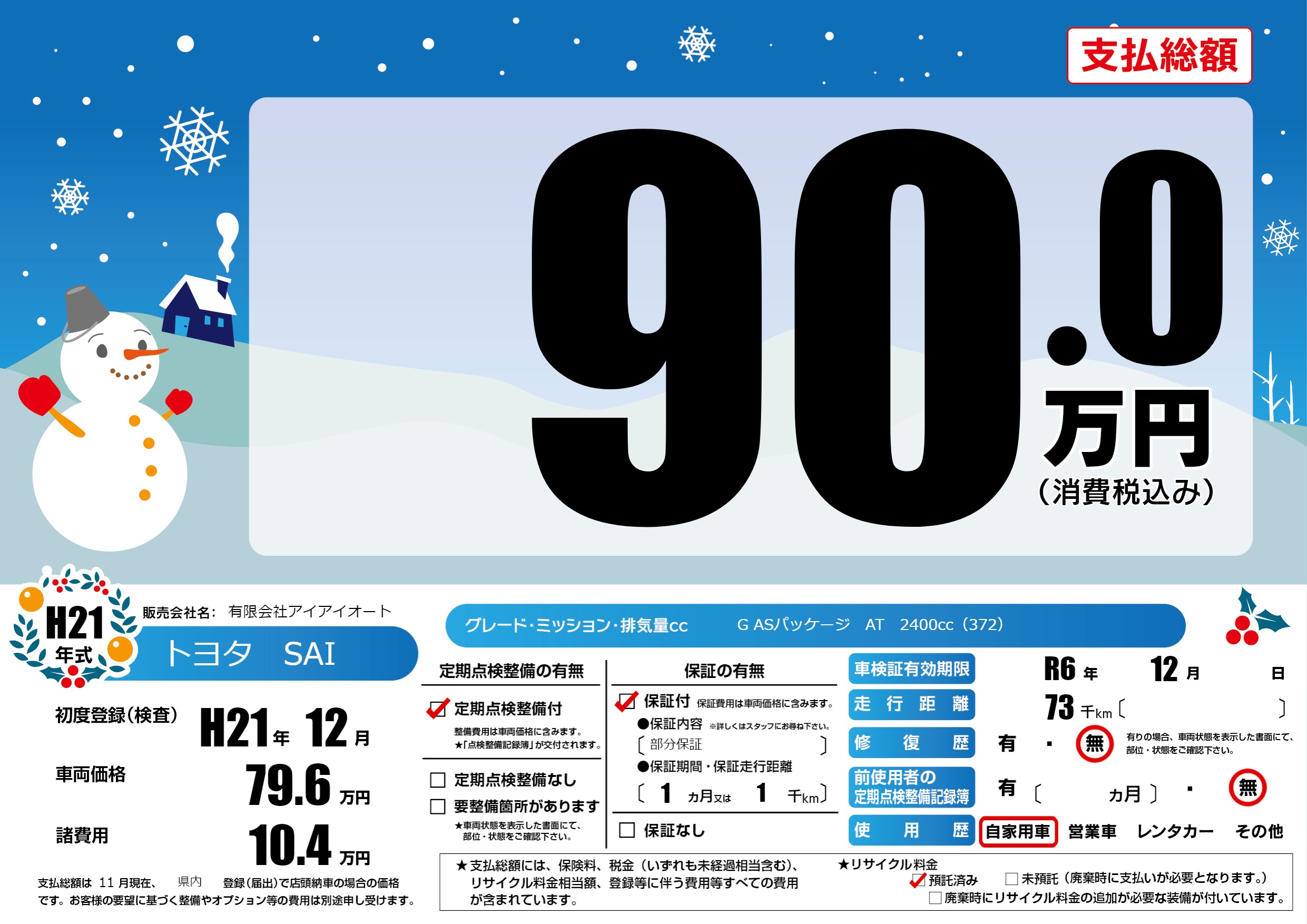 | 車検制限 | R6年 12月 - 日 | ||