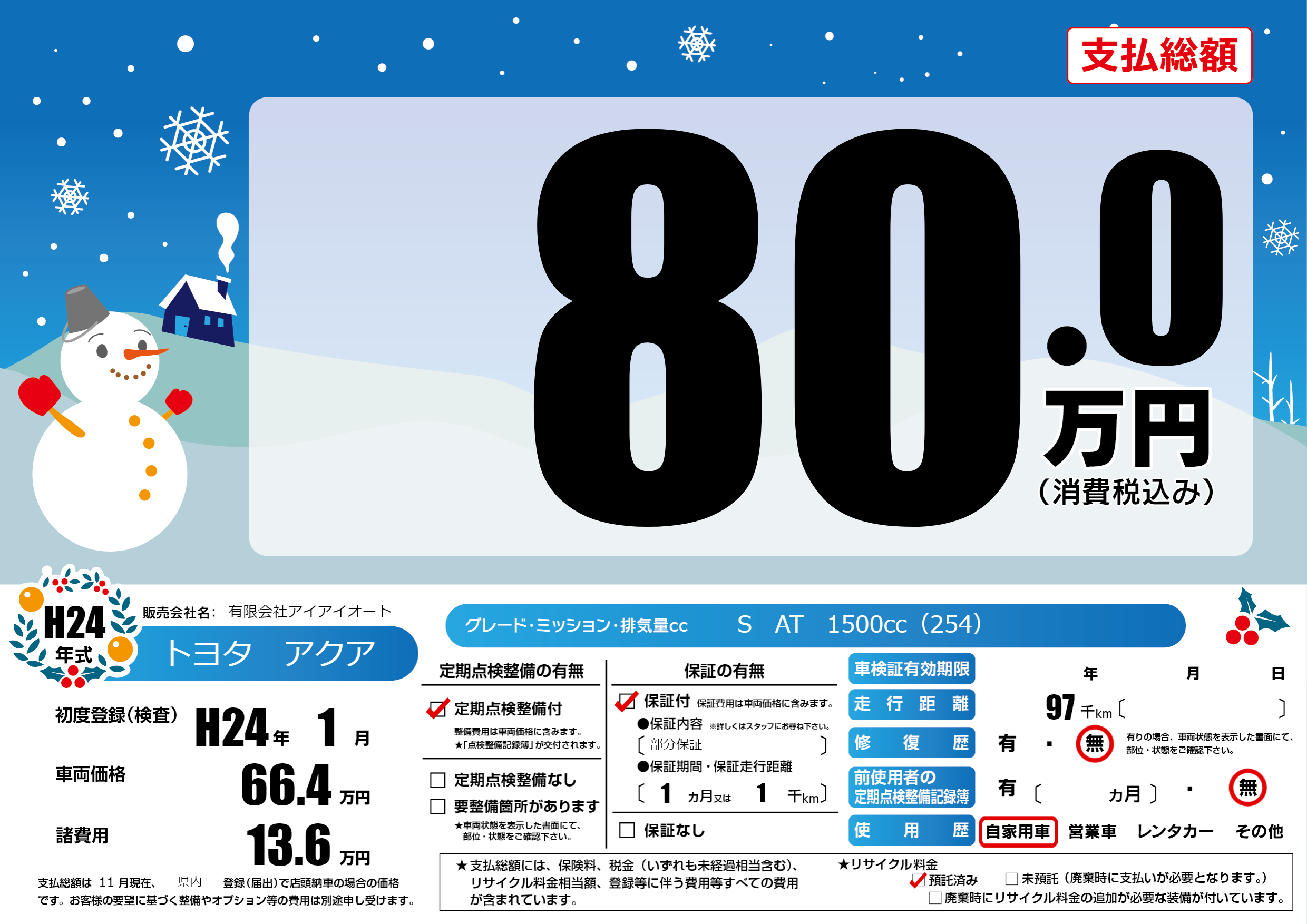 保証付き 保証内容(部分保証) 1ヶ月または(1)千kmまで |