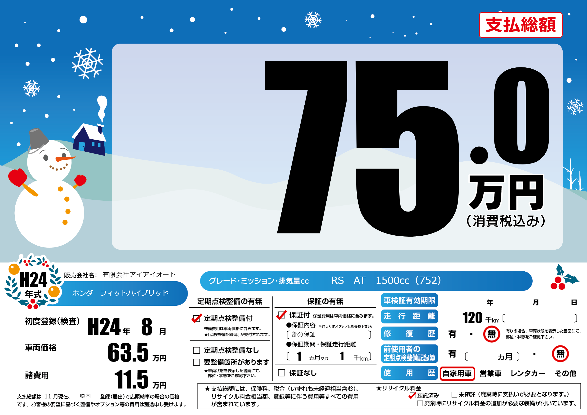 | 走行キロ | 12万km | 初年度登録 | H24年8月 |