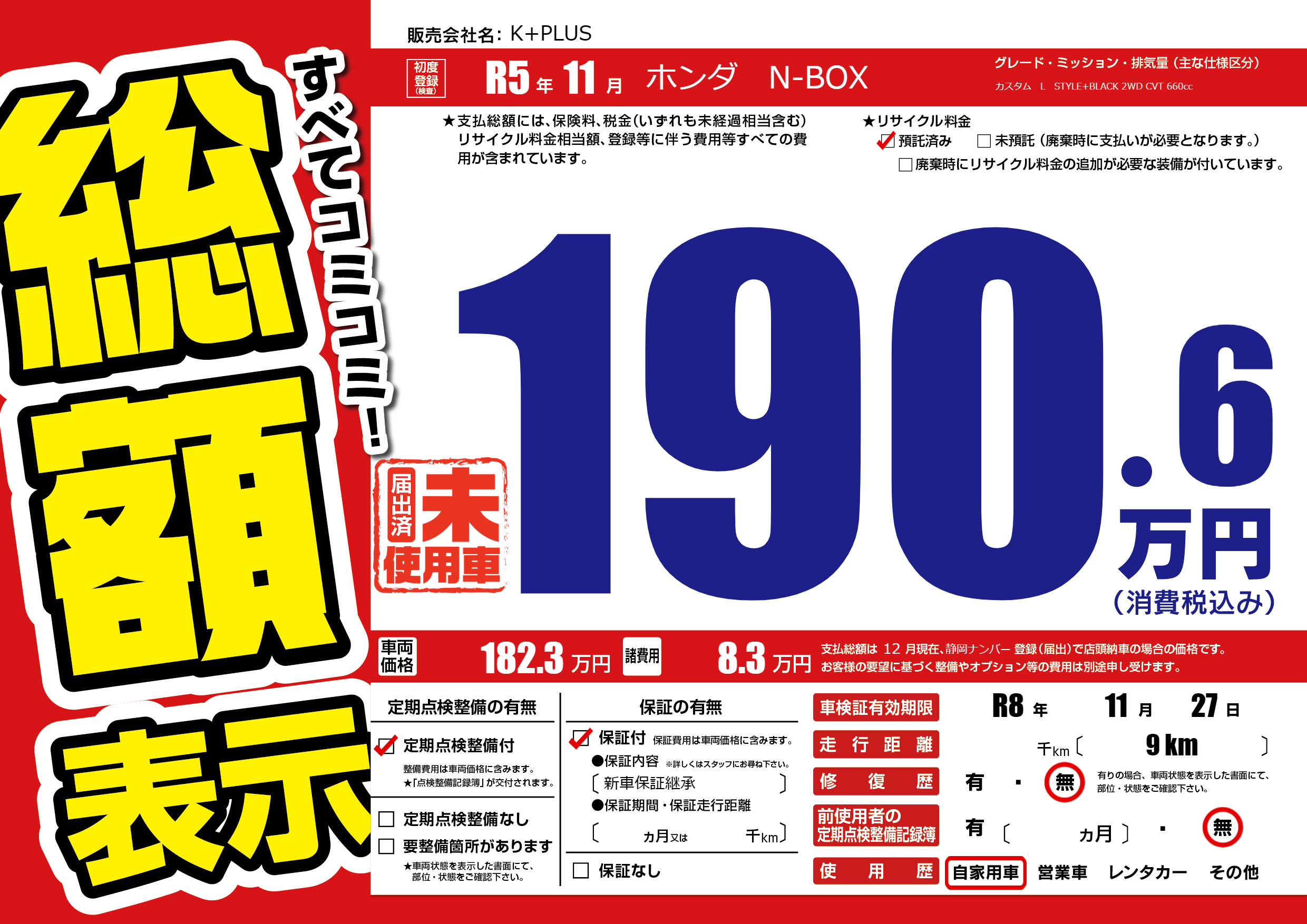 | 走行キロ | - | 初年度登録 | R5年11月 |