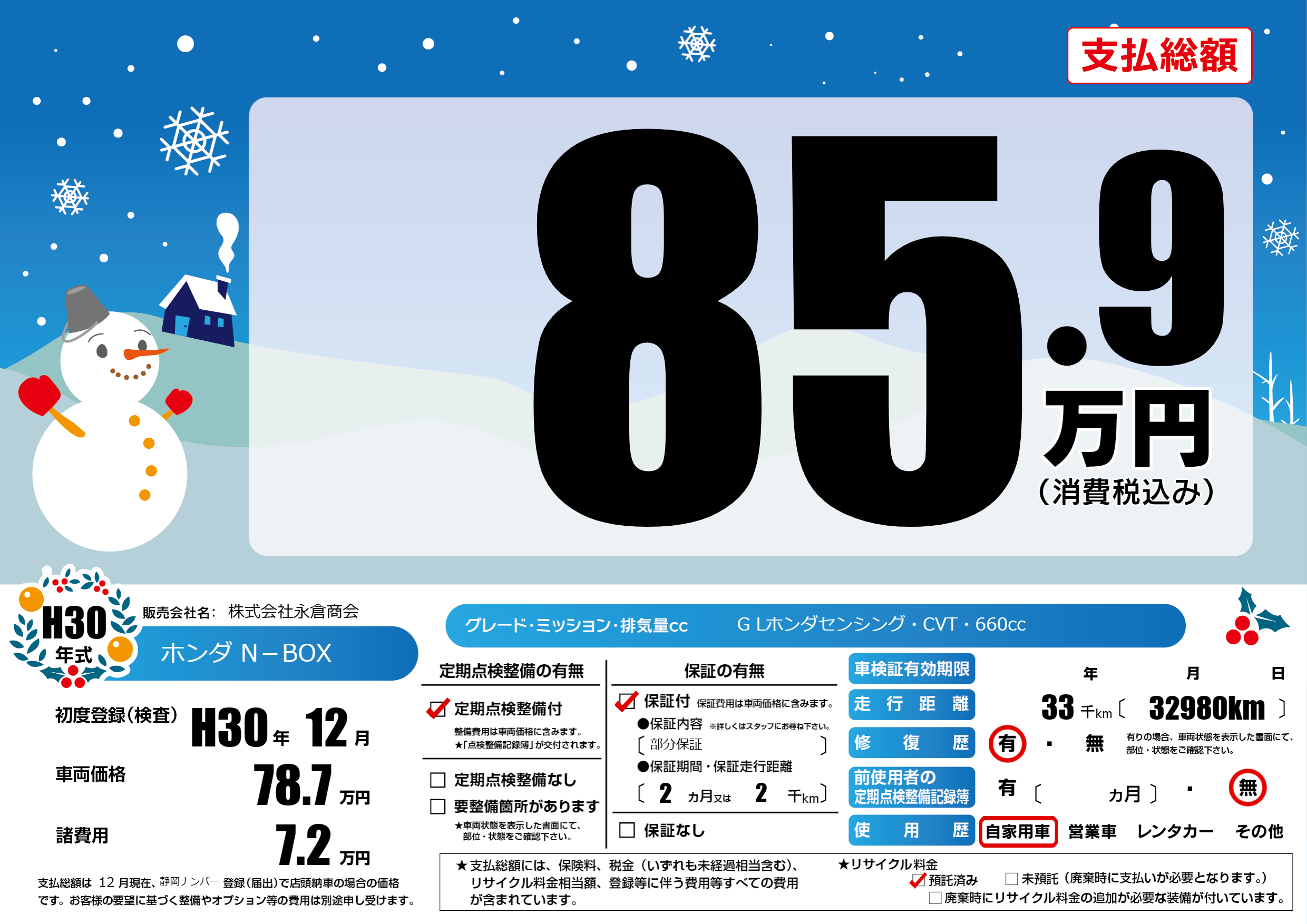 | 初年度登録 | H30年12月 | ||