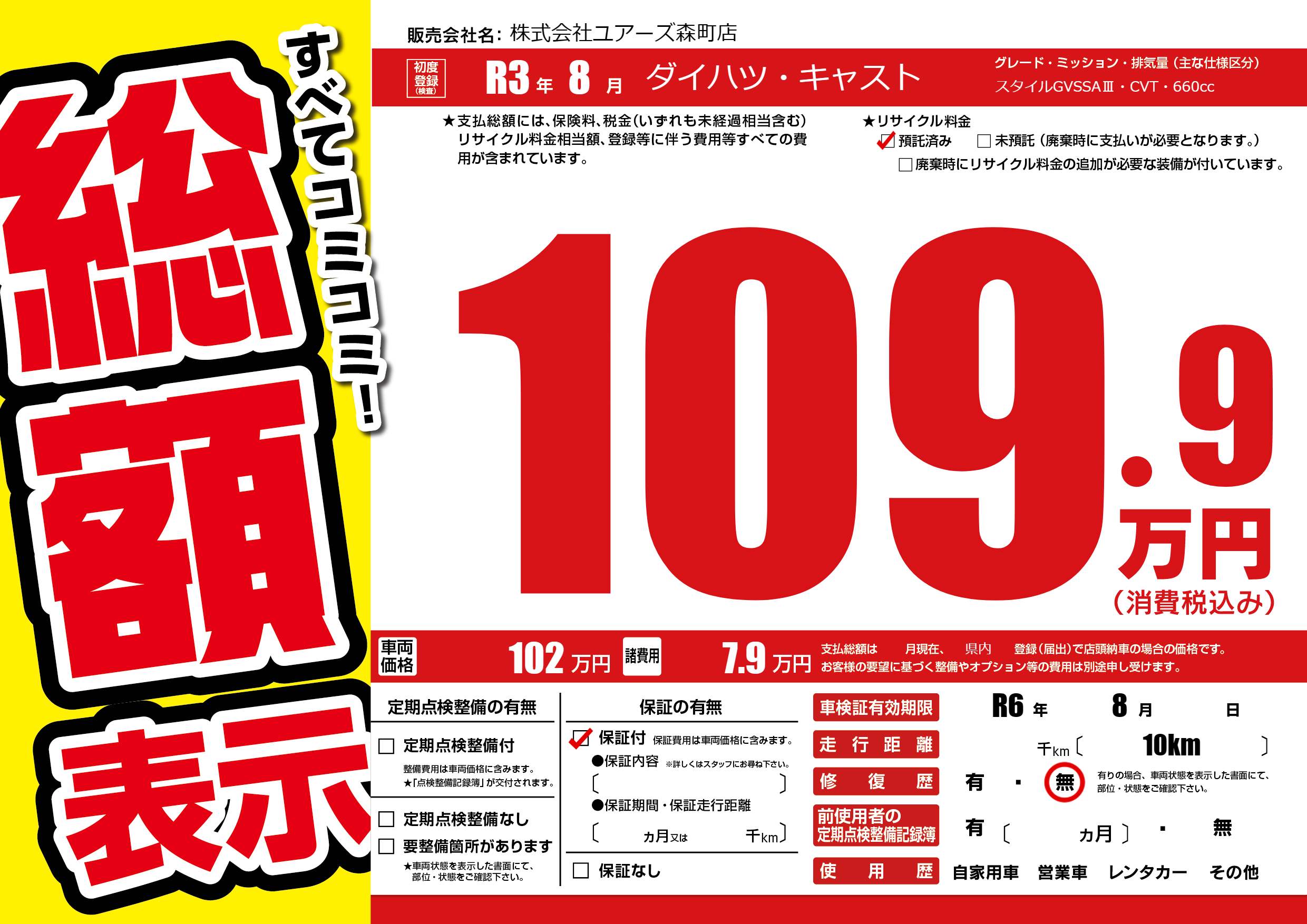 | 車名 | ダイハツ・キャスト | グレード ミッション 排気量 |