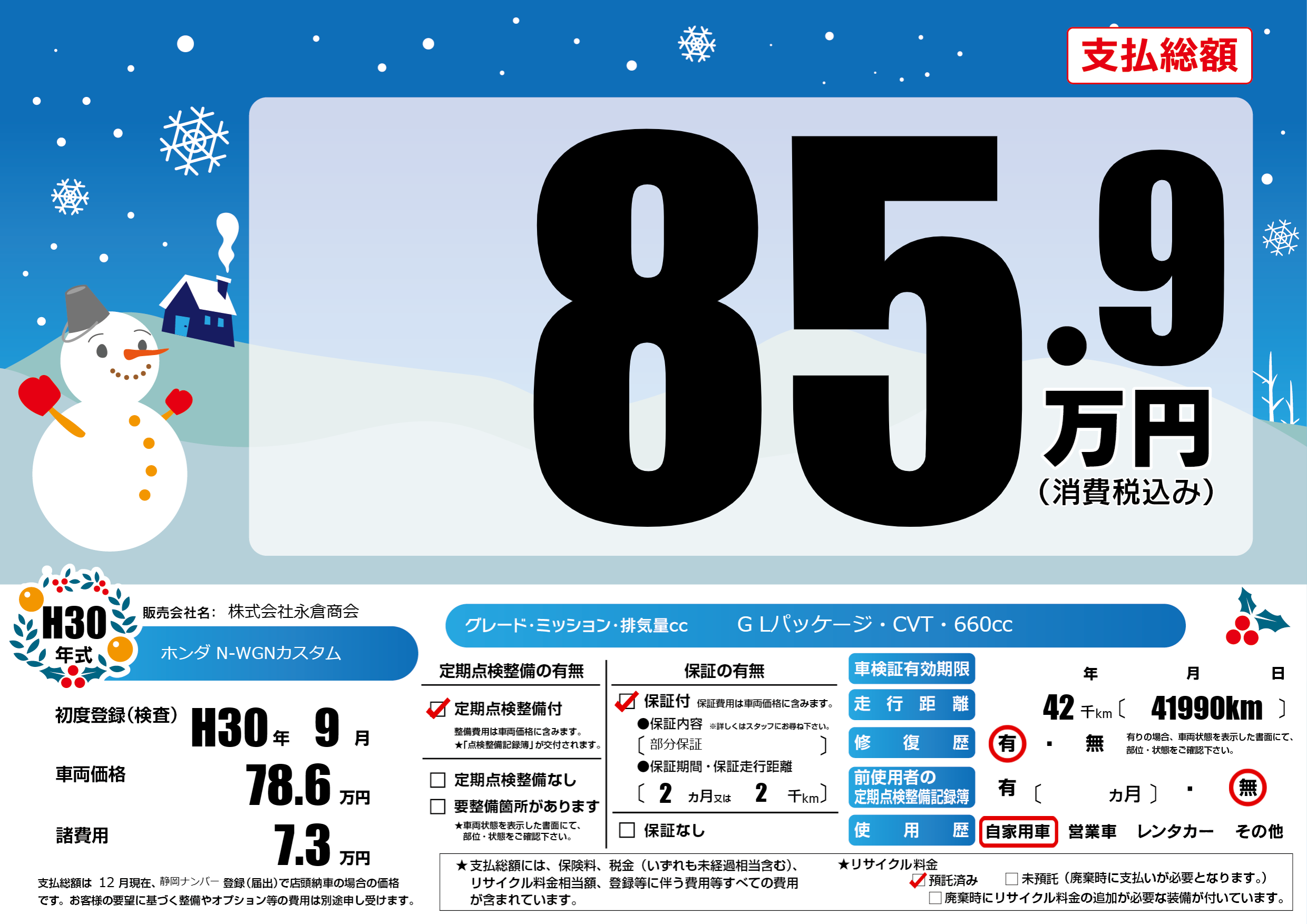 | 走行キロ | 4.2万km | 初年度登録 | H30年9月 |