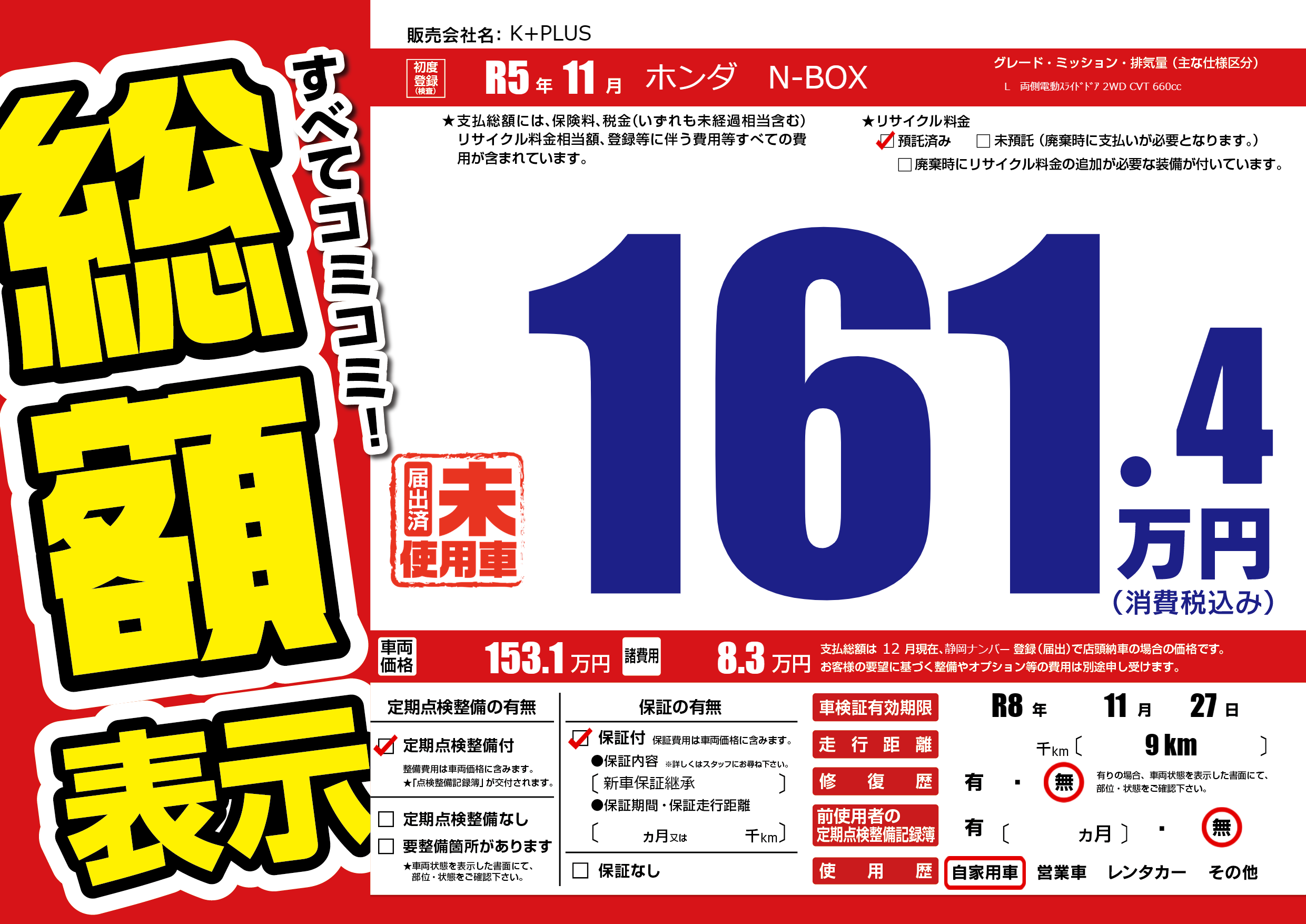 | 走行キロ | - | 初年度登録 | R5年11月 |