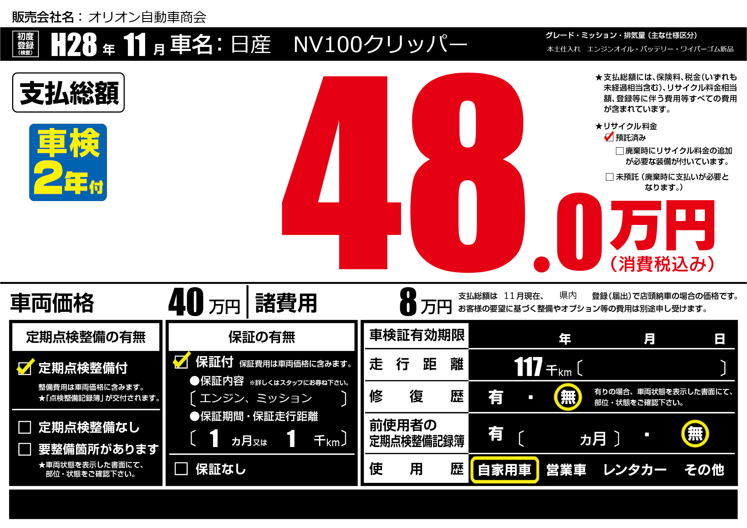 | 走行キロ | 11.7万km | 初年度登録 | H28年11月 |
