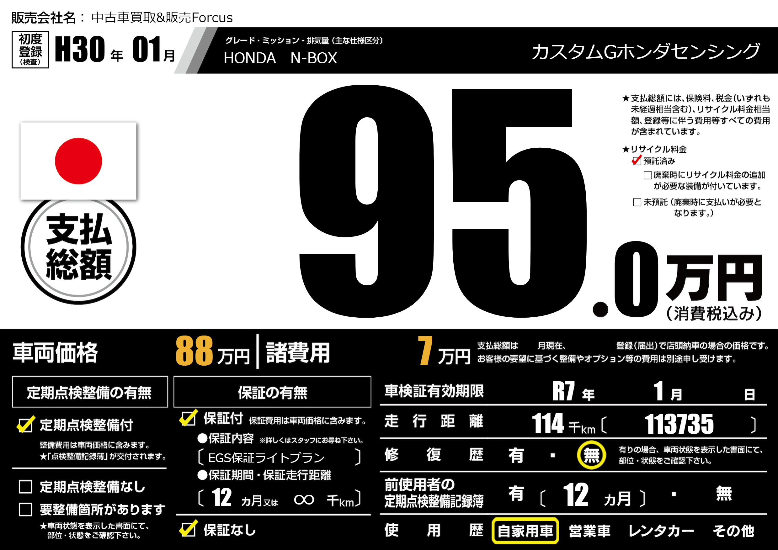 | 走行キロ | 11.4万km | 初年度登録 | H30年01月 |