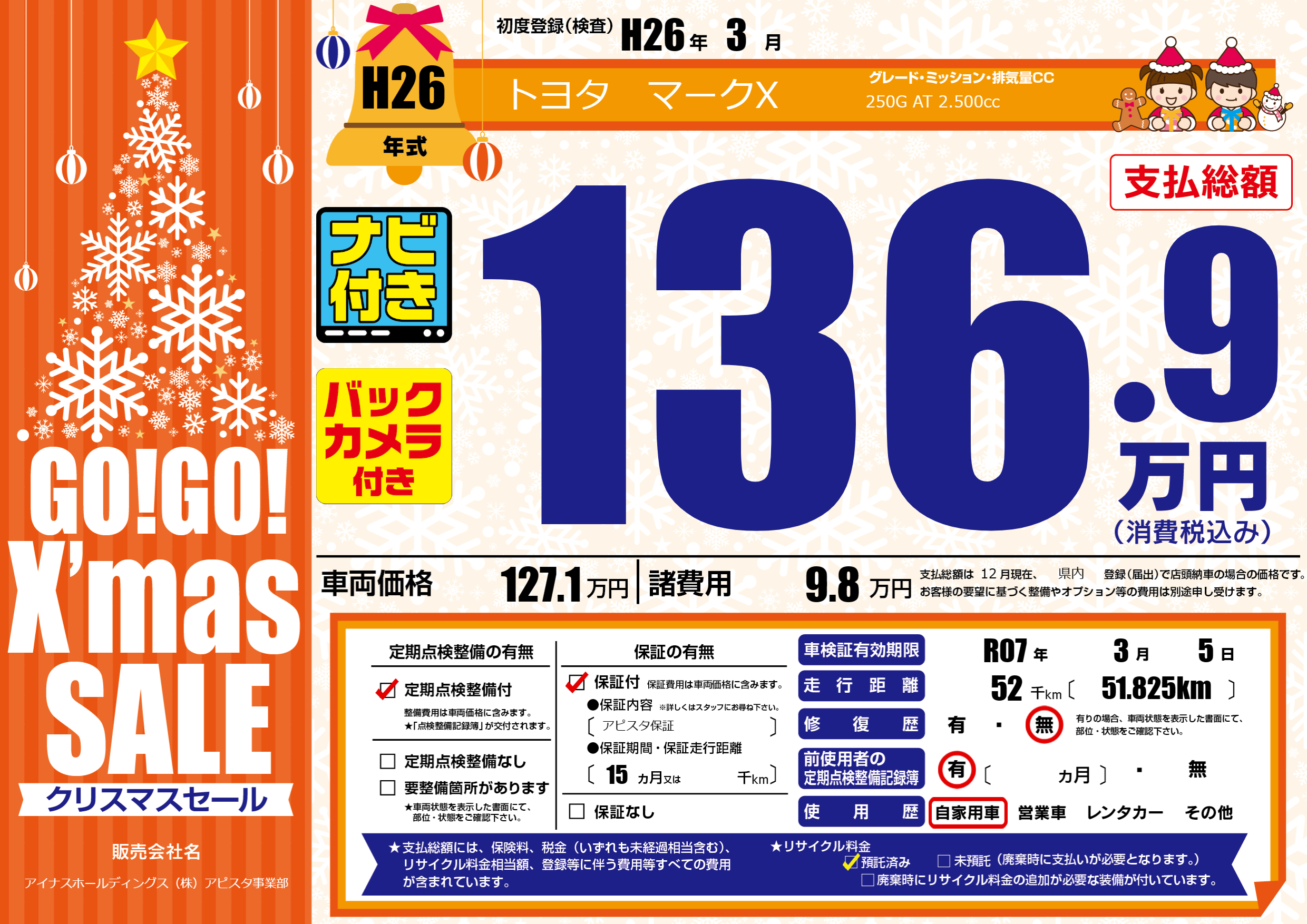 | 走行キロ | 5.2万km | 初年度登録 | H26年3月 |