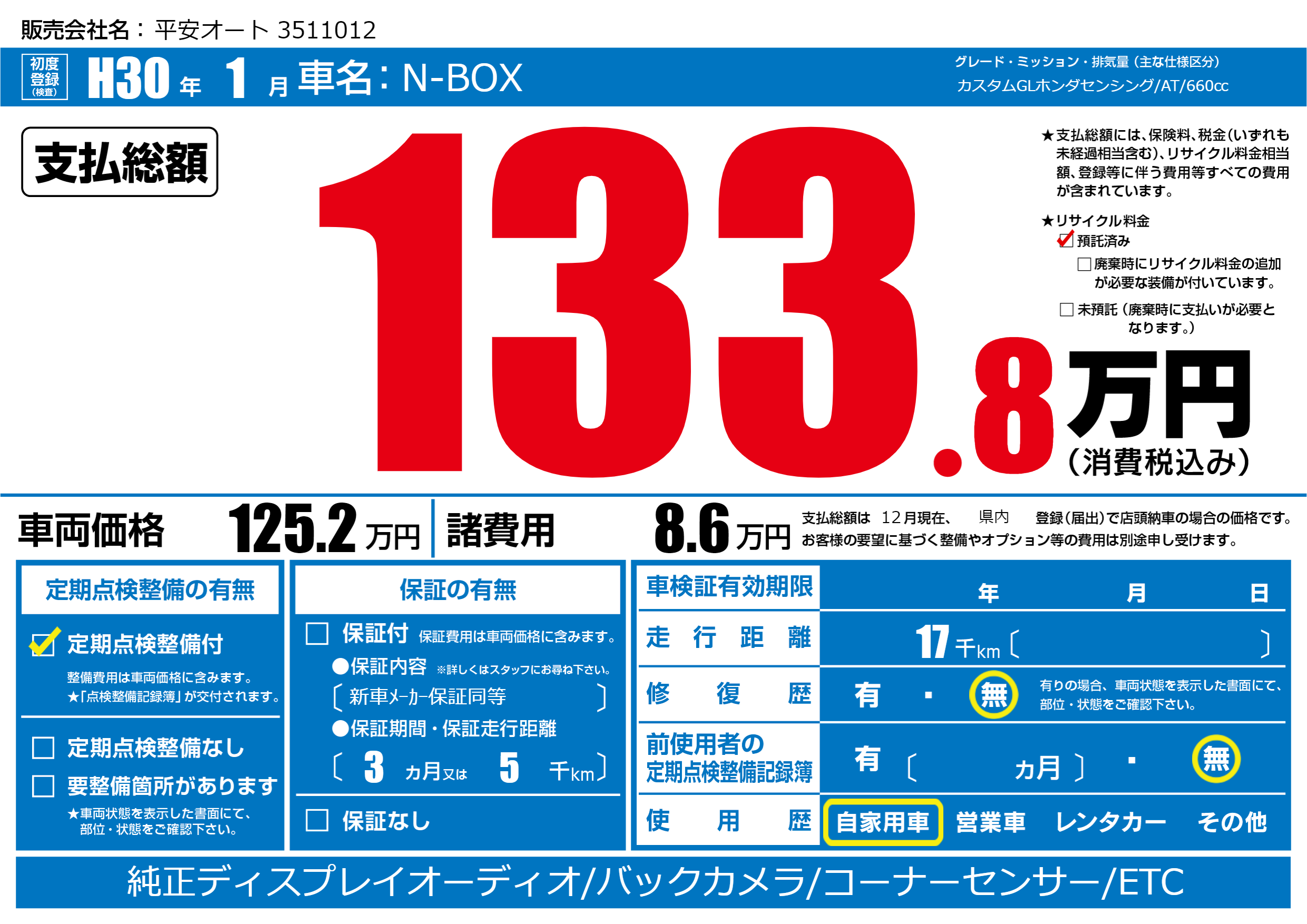 保証内容(新車メーカー保証同等) 3ヶ月または5千km