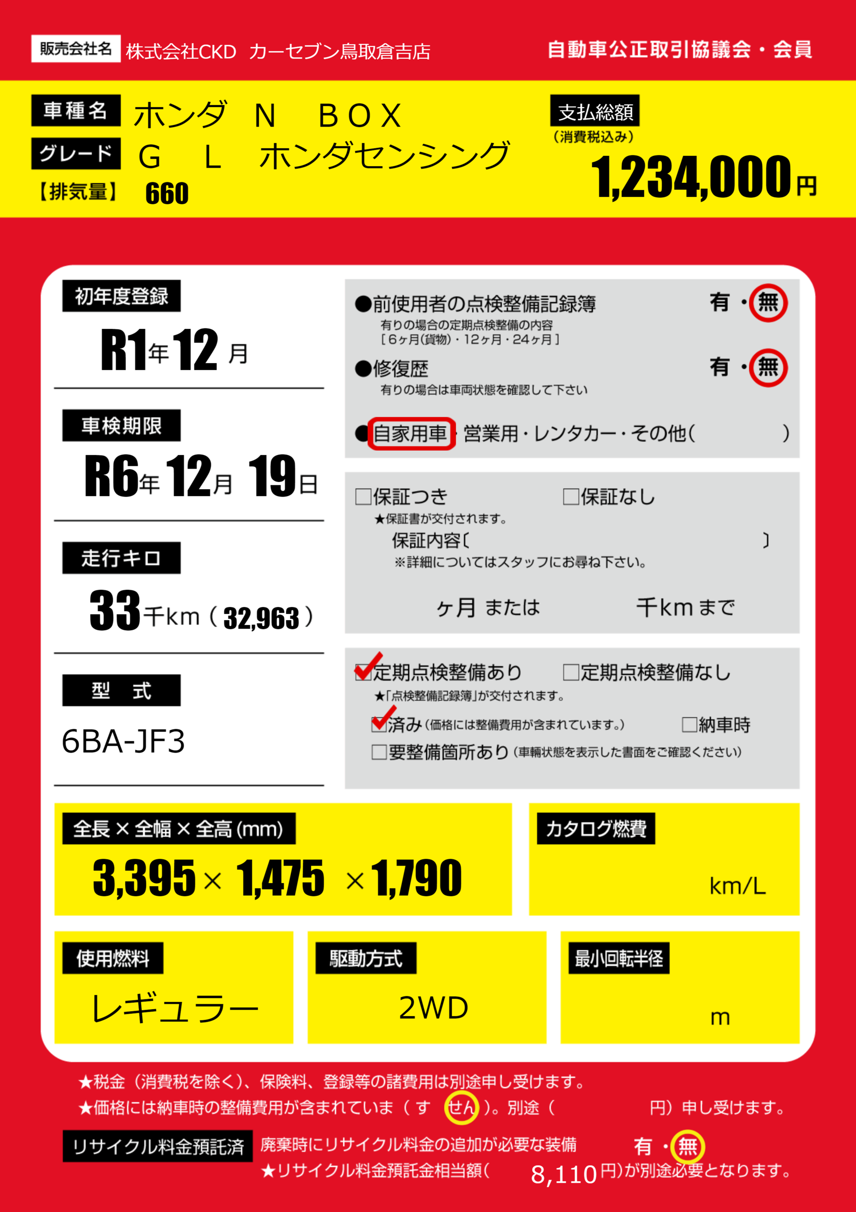 | 定期点検整備 | 定期点検整備あり 定期点検整備済み | ||