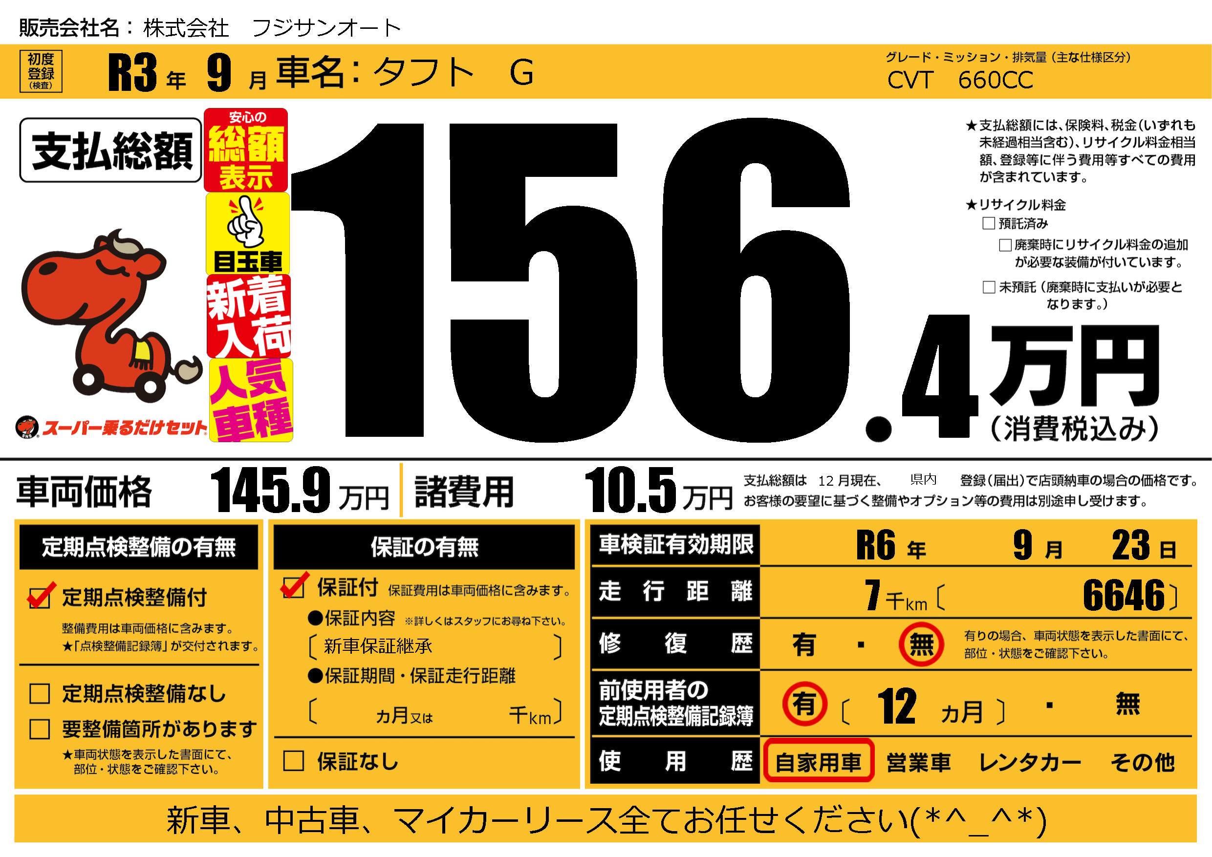 | 車名 | タフト G | グレード ミッション 排気量 |