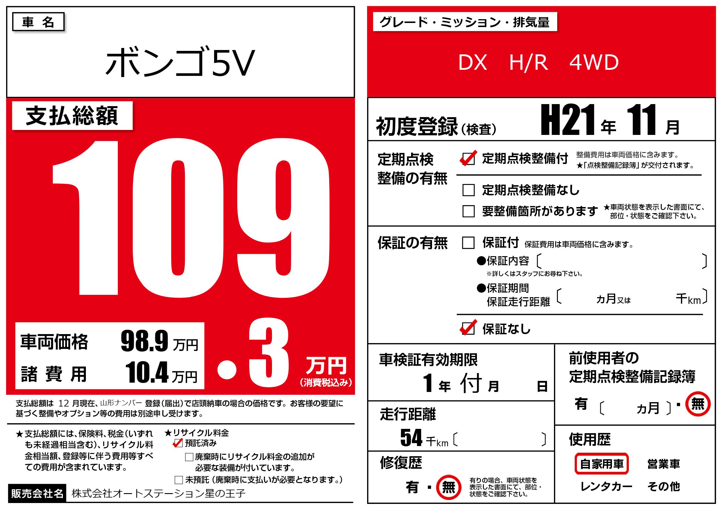 | 定期点検整備 | 定期点検整備あり | ||