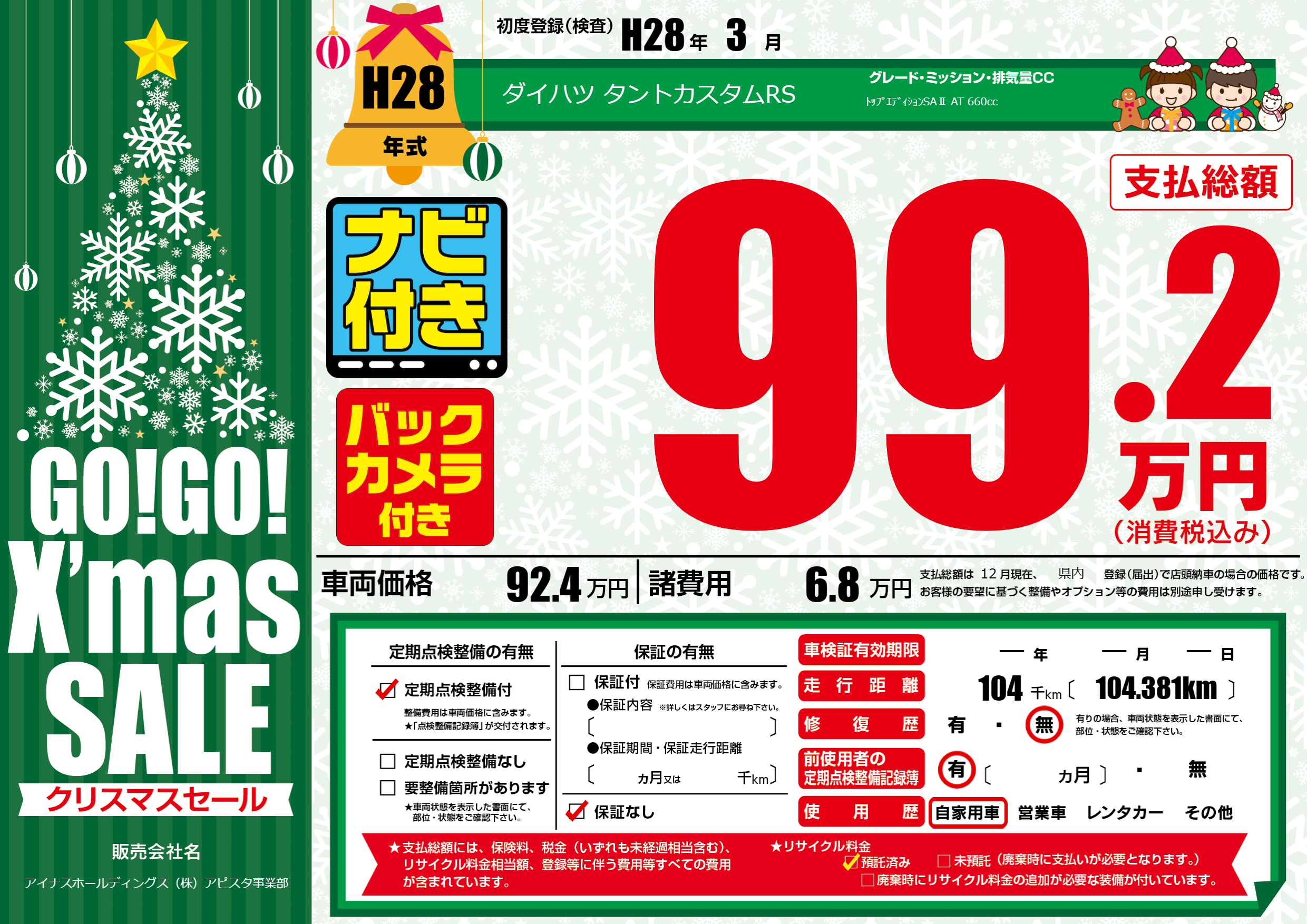 | 定期点検整備 | 定期点検整備あり | ||