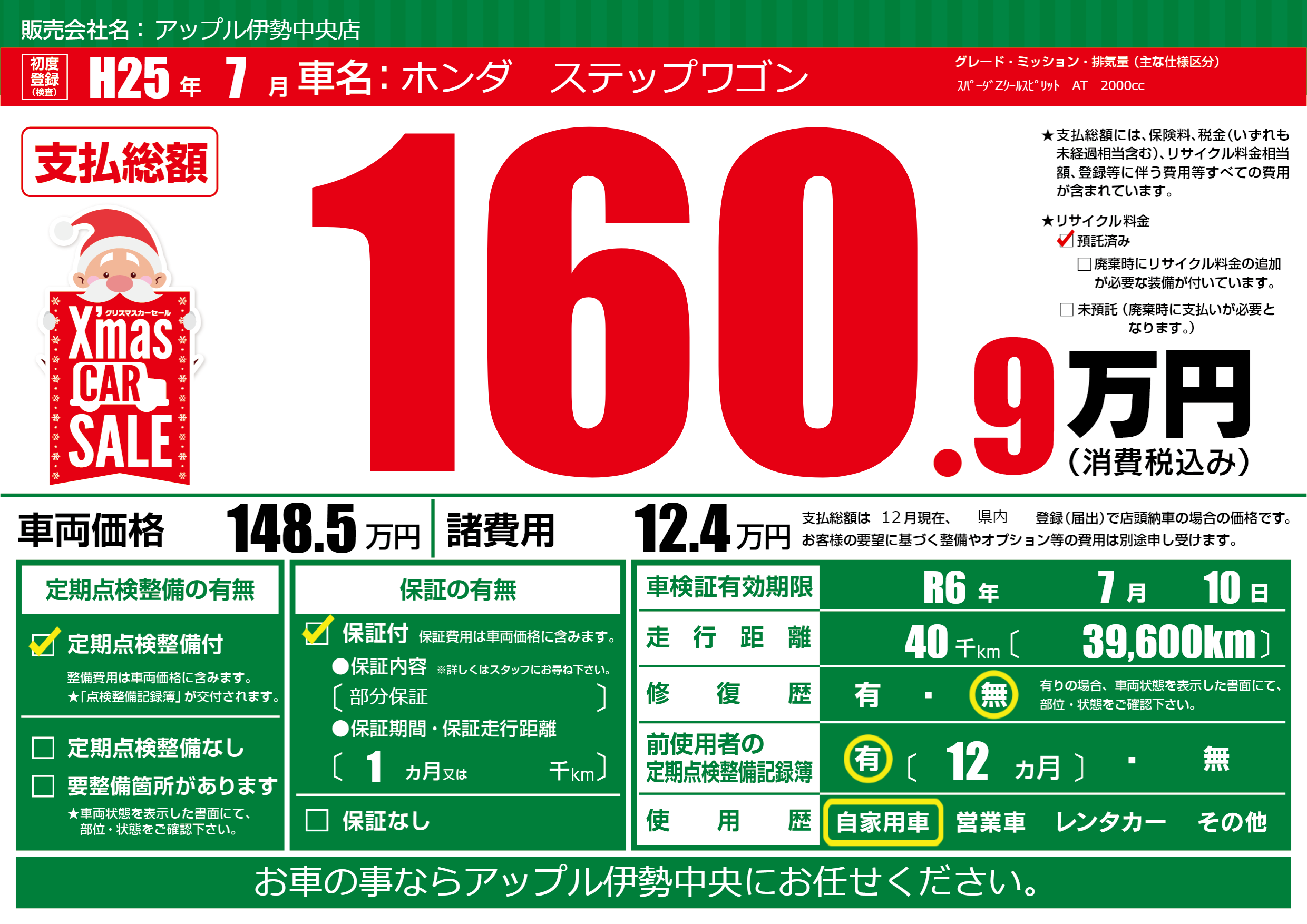 | 走行キロ | 4万km | 初年度登録 | H25年7月 |