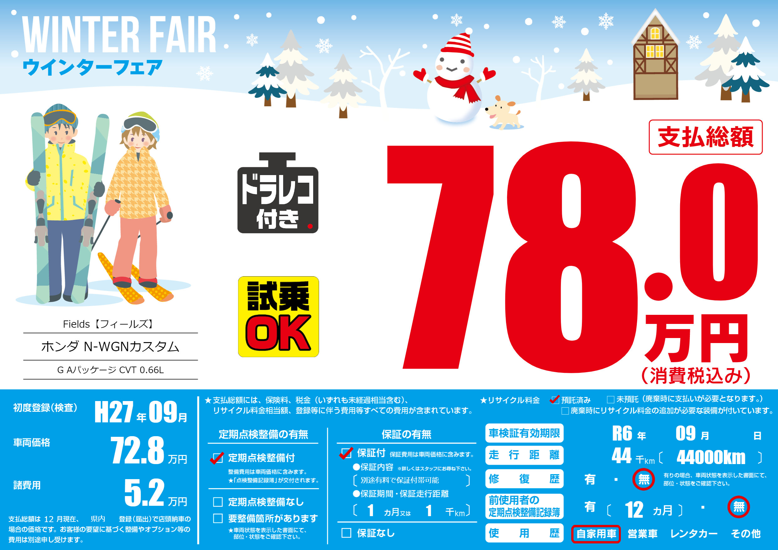 | 走行キロ | 4.4万km | 初年度登録 | H27年09月 |