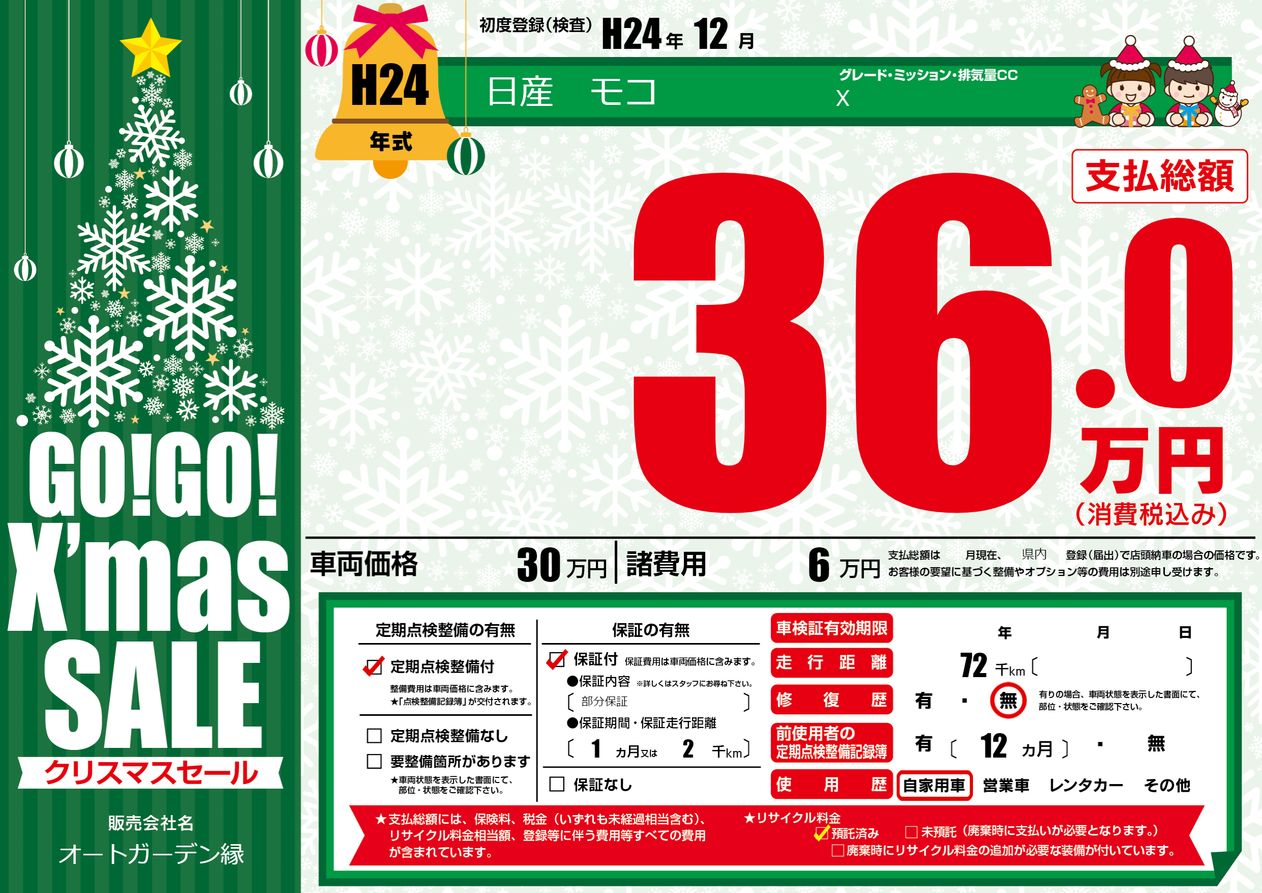 | 車名 | 日産 モコ | グレード ミッション 排気量 |
