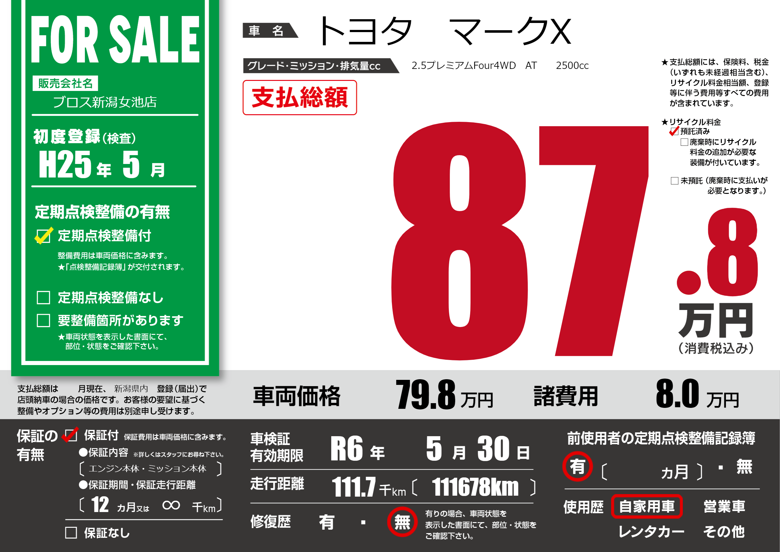 | 走行キロ | 11.1万km | 初年度登録 | H25年5月 |