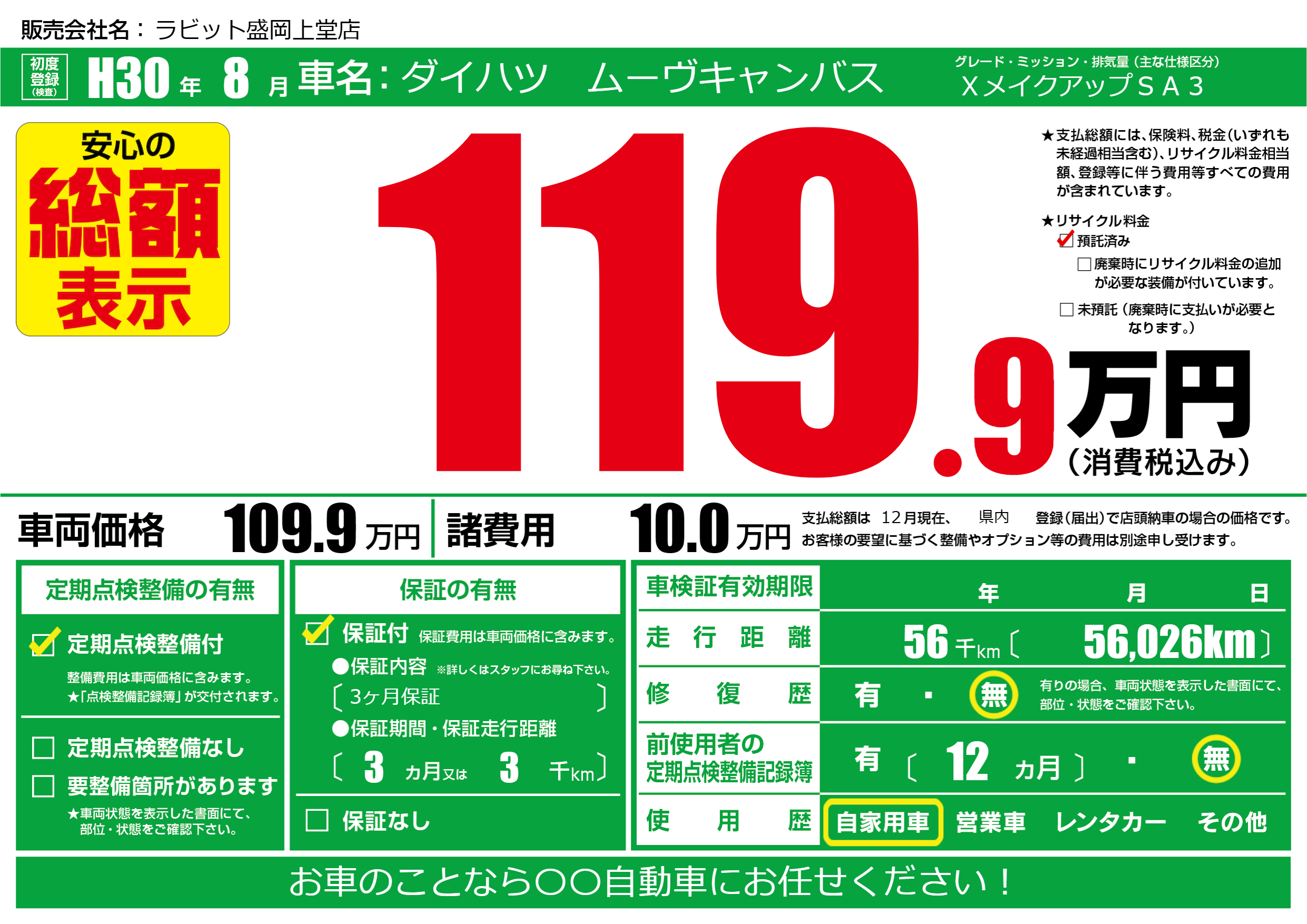 保証付き 保証内容(3ヶ月保証) 3ヶ月または(3)千kmまで |