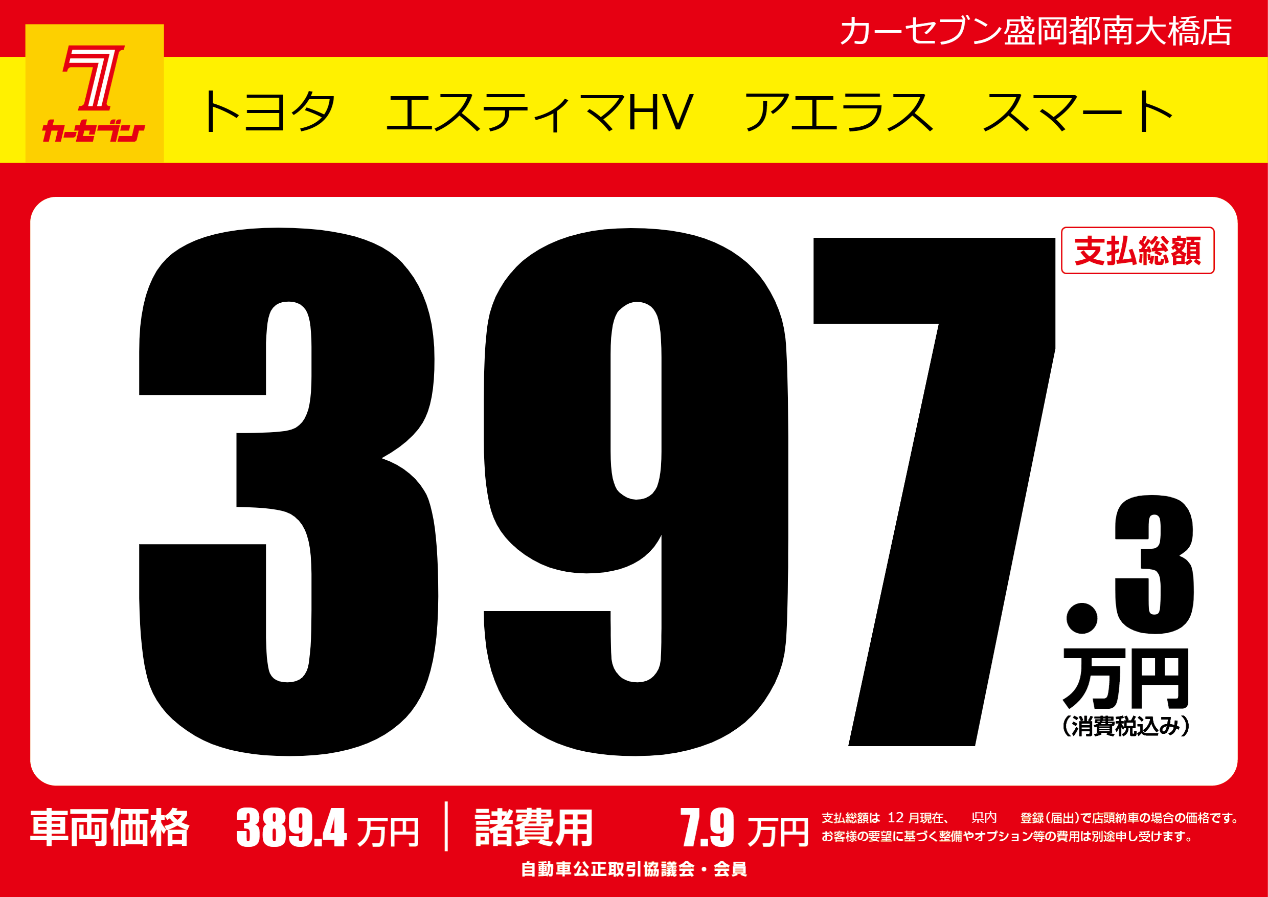 | 車名 | トヨタ エスティマHV アエラス スマート | グレード ミッション 排気量 |