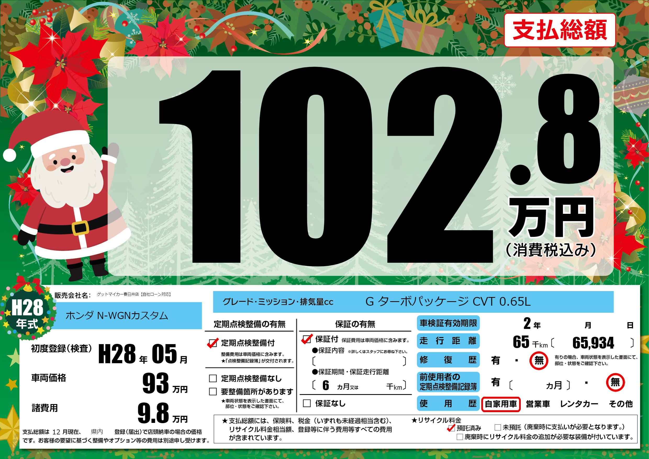 | 車名 | ホンダ N-WGNカスタム | グレード ミッション 排気量 |