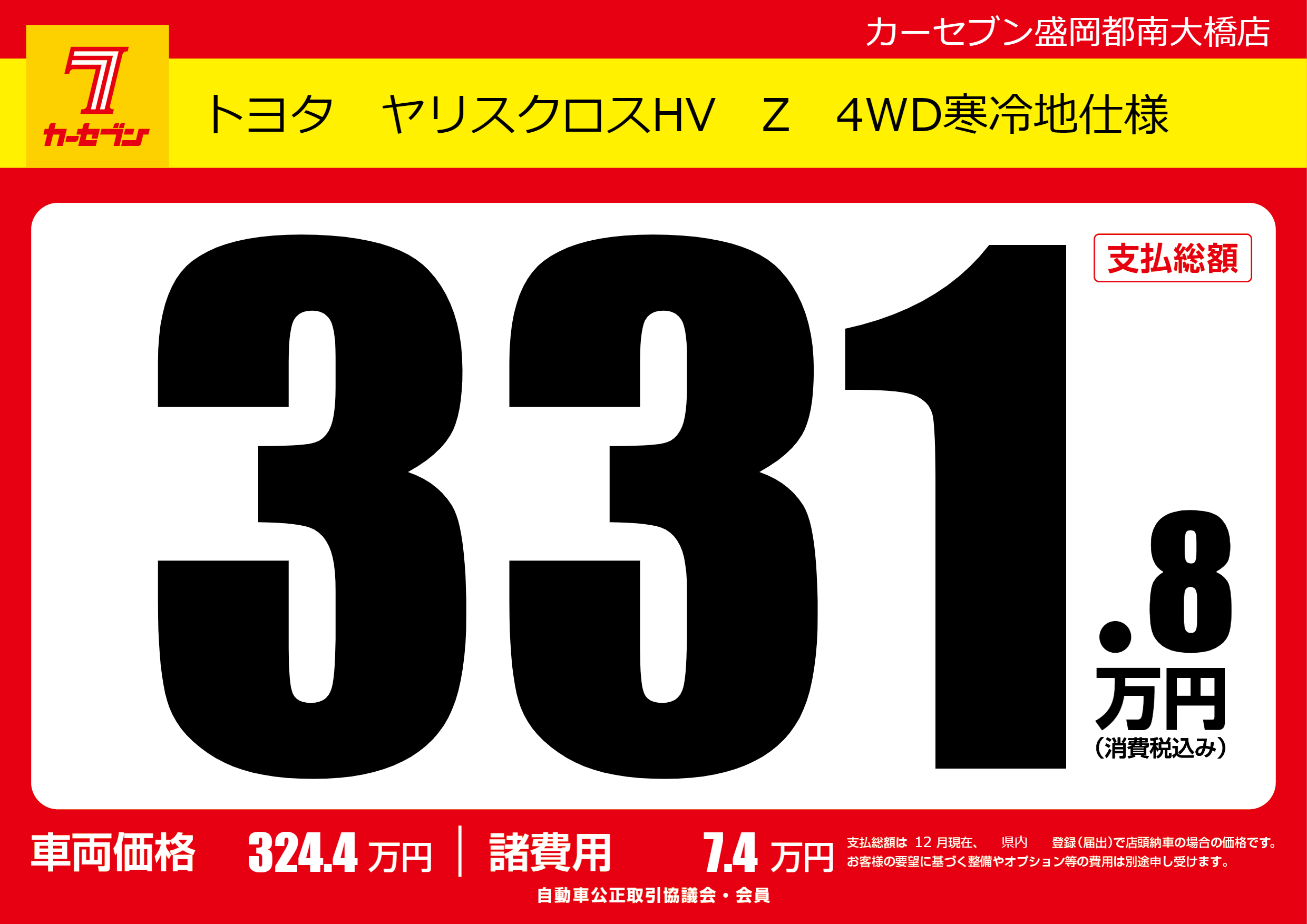 トヨタ ヤリスクロスHV Z 4WD寒冷地仕様
