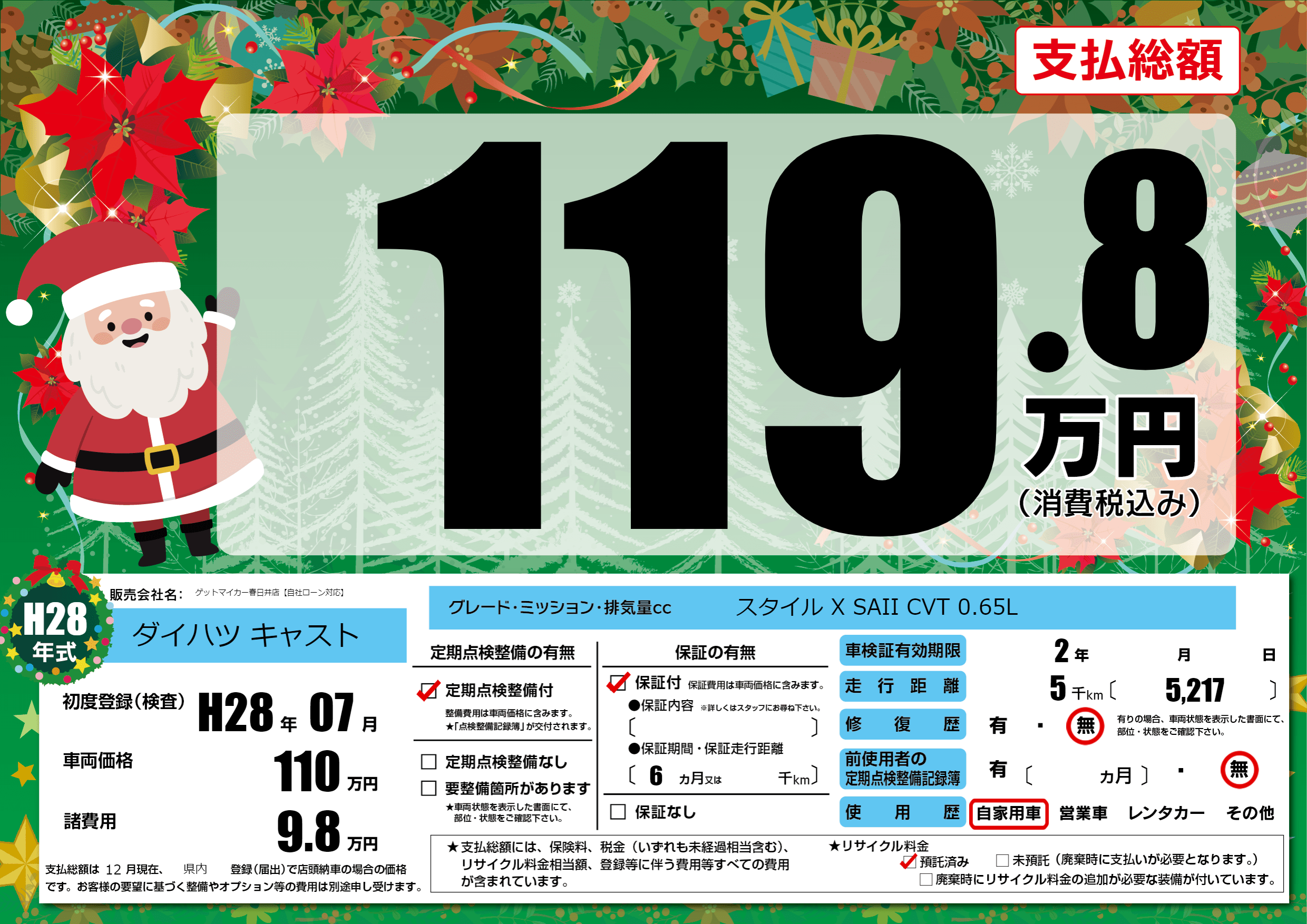 | 車名 | ダイハツ キャスト | グレード ミッション 排気量 |