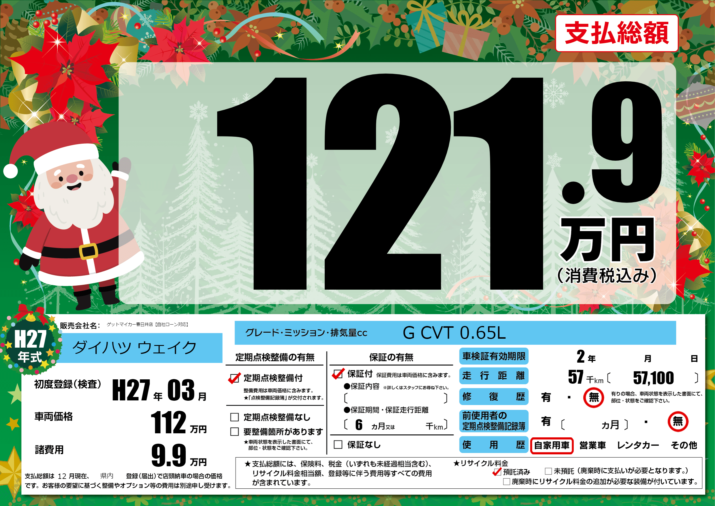 | 車名 | ダイハツ ウェイク | グレード ミッション 排気量 |