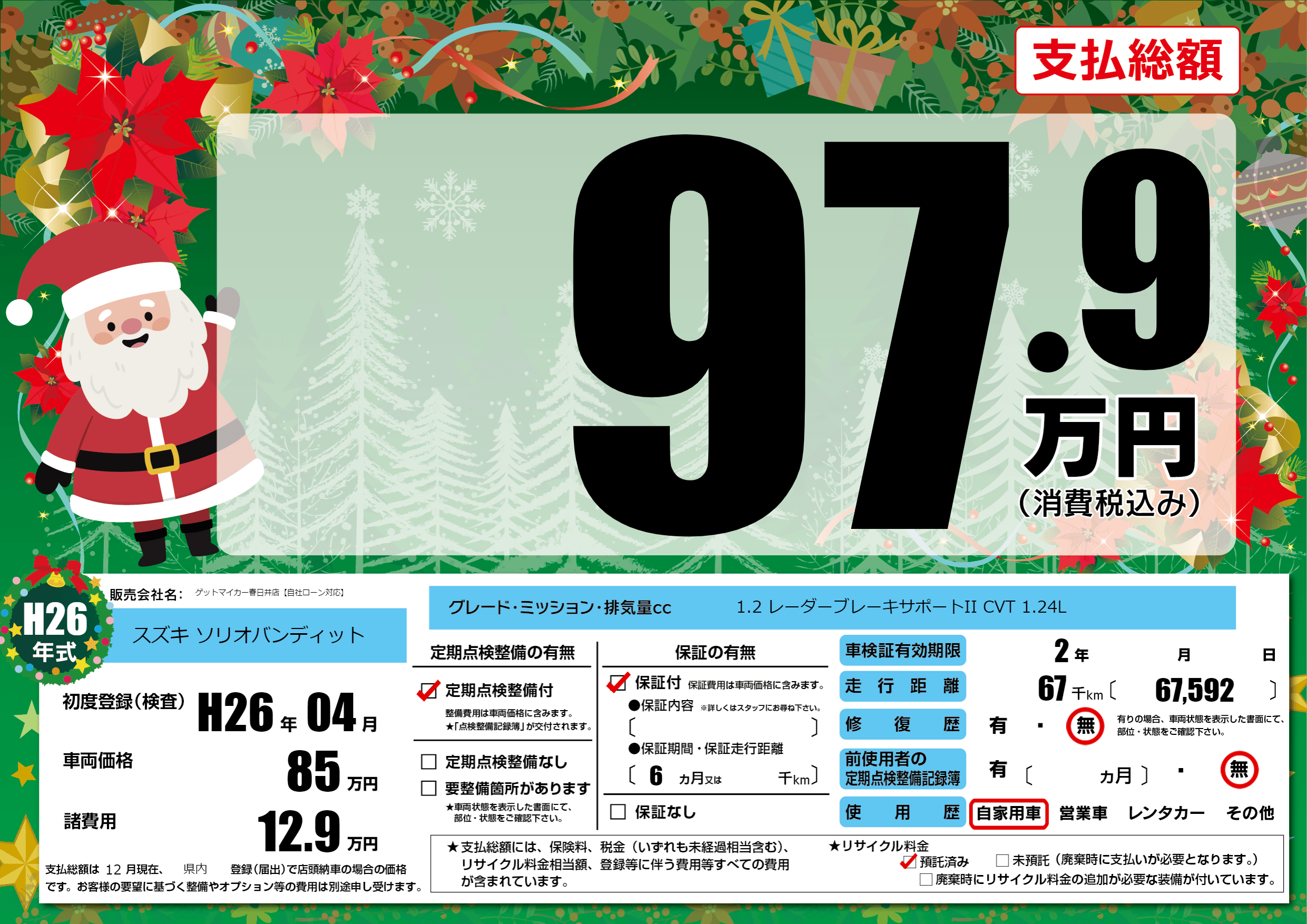 | 車名 | スズキ ソリオバンディット | グレード ミッション 排気量 |