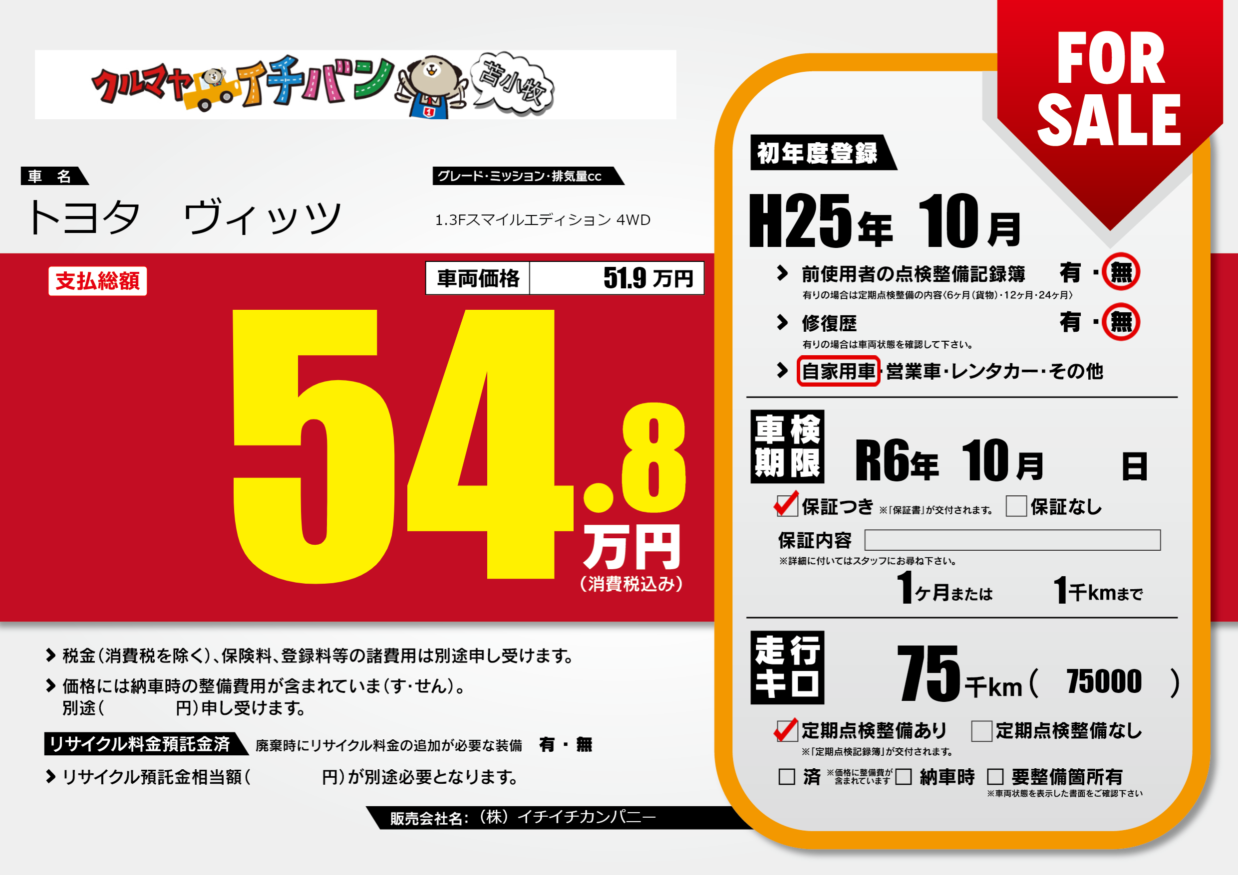 | 車検制限 | R6年 10月 - 日 | ||