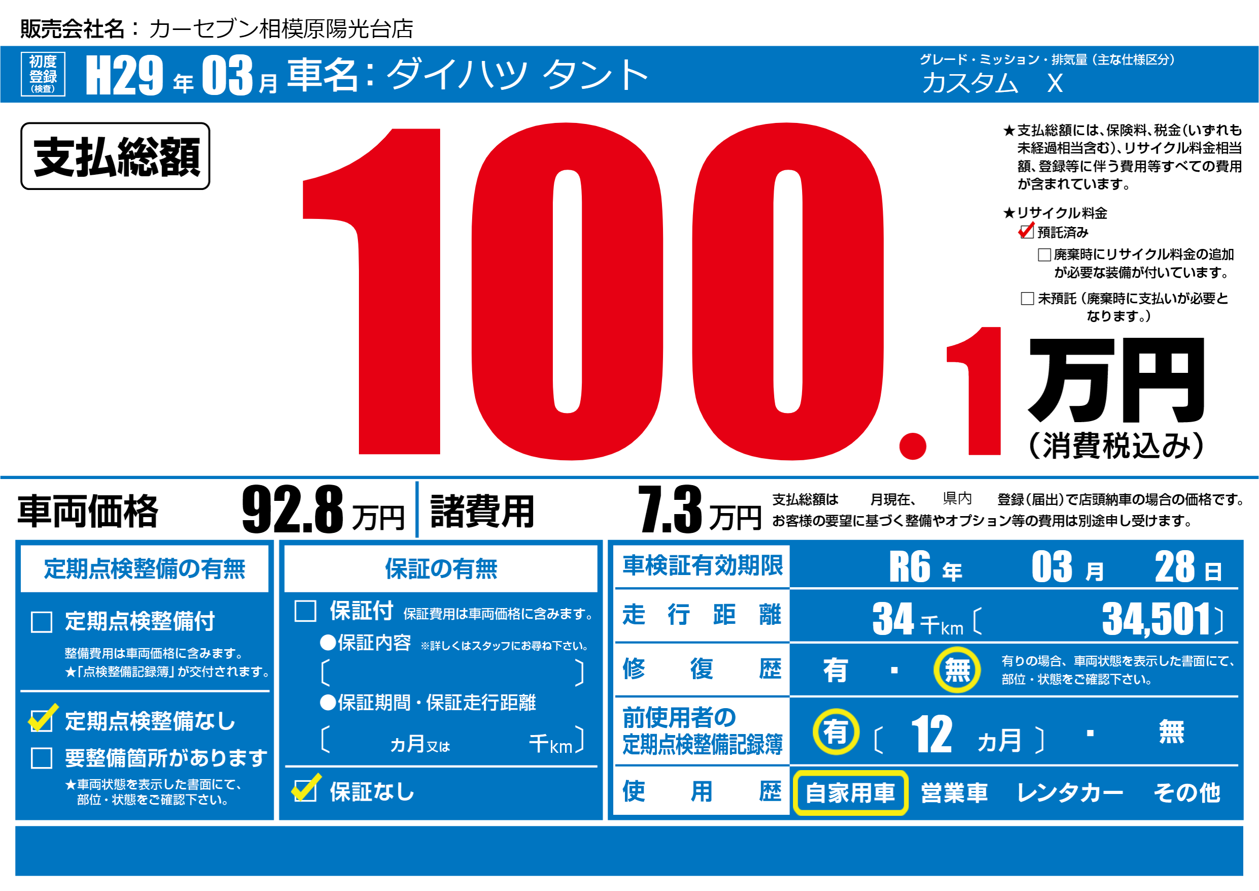 なし | 車検制限 | R6年03月28月 |