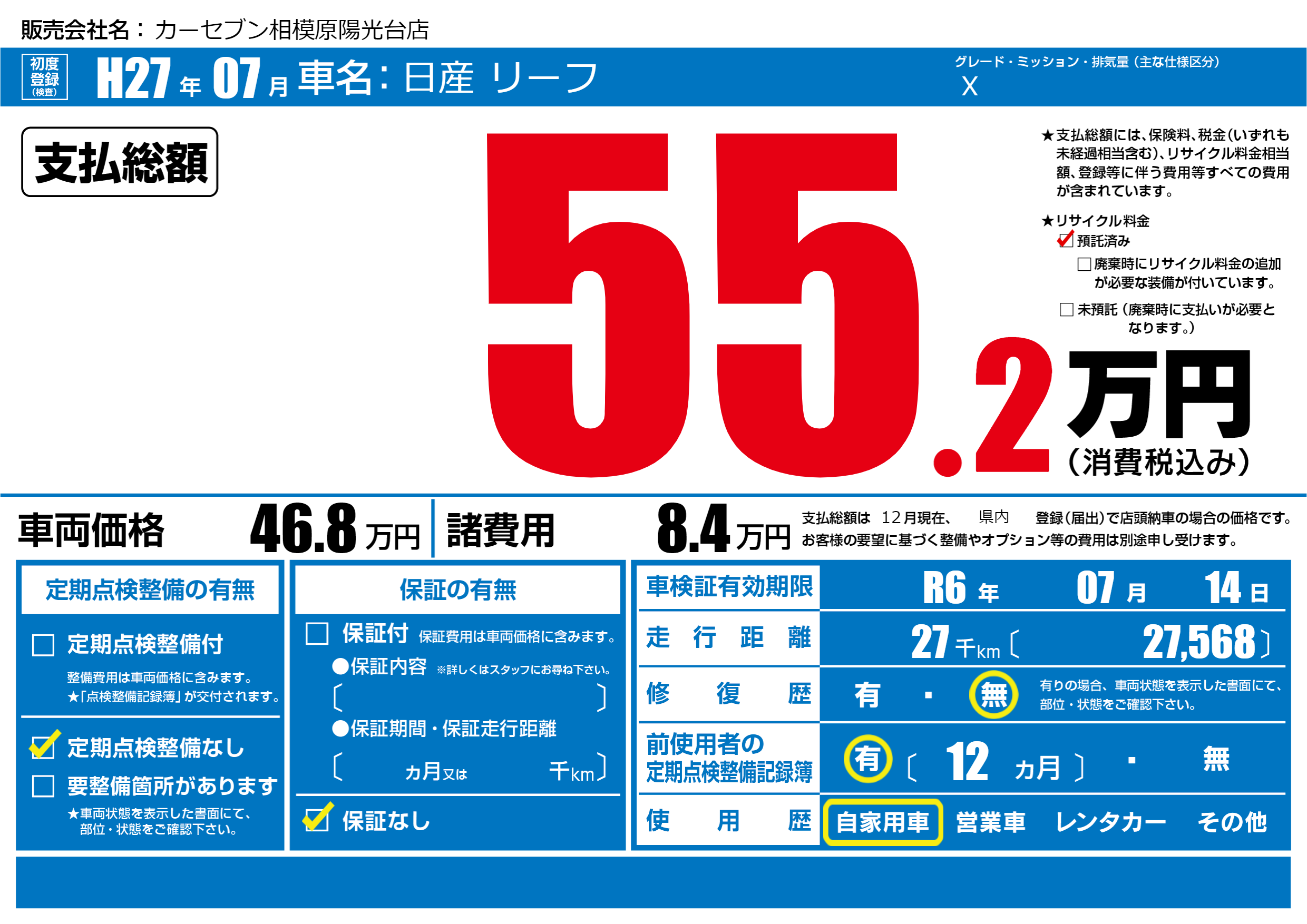 | 定期点検整備 | 定期点検整備なし | ||