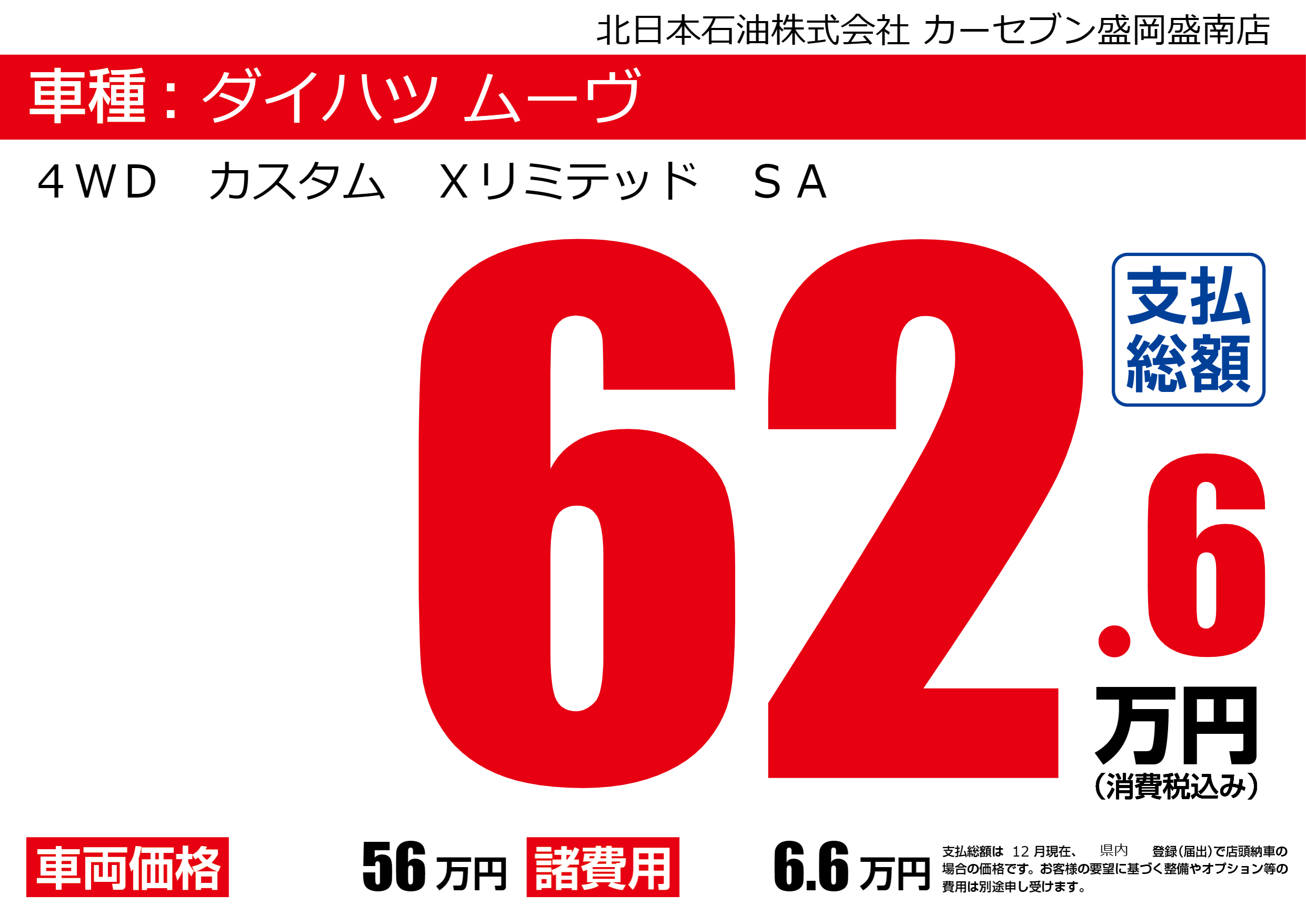 | 車名 | ダイハツ ムーヴ | グレード ミッション 排気量 |