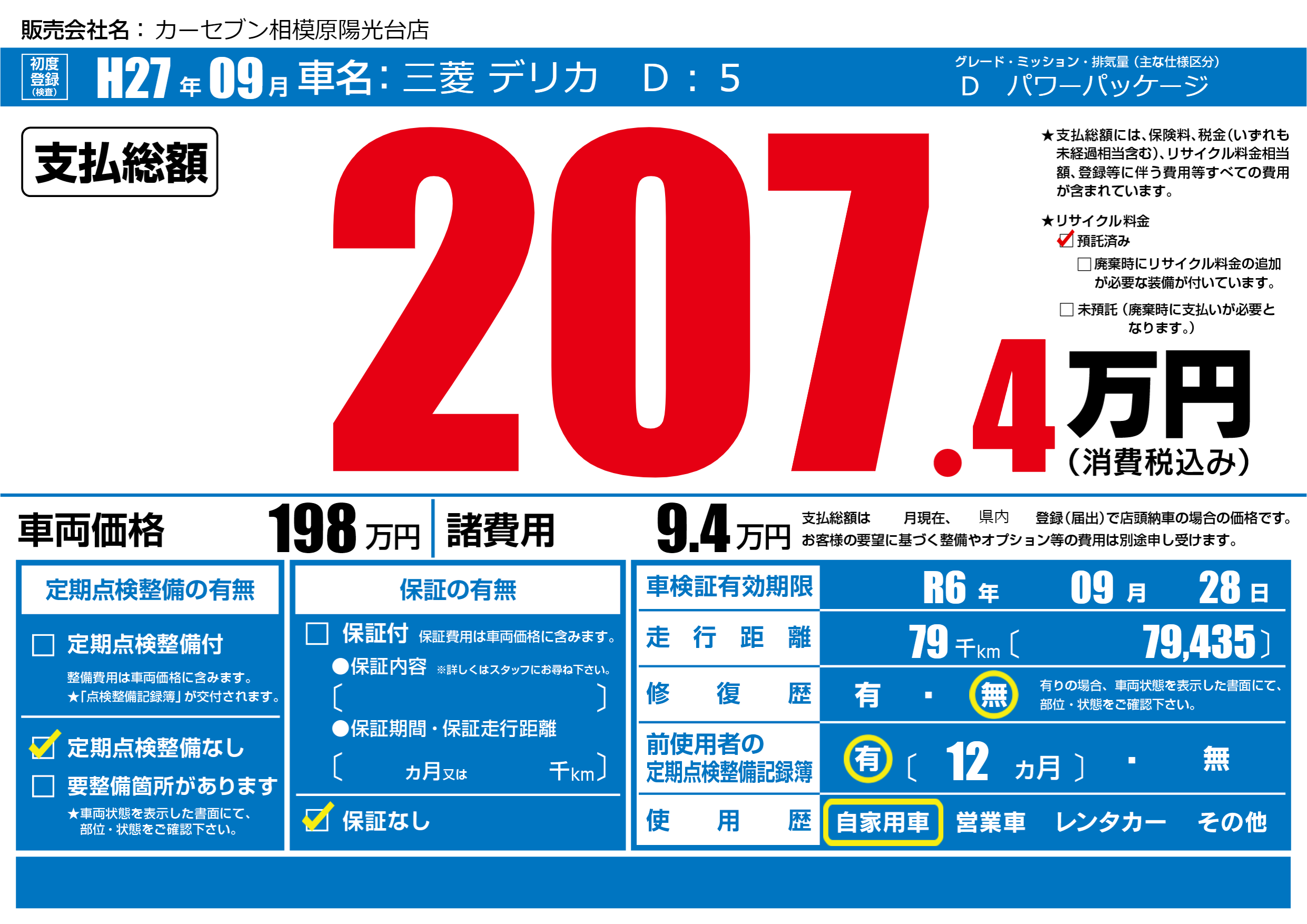| 車検制限 | R6年 09月 28日 | ||