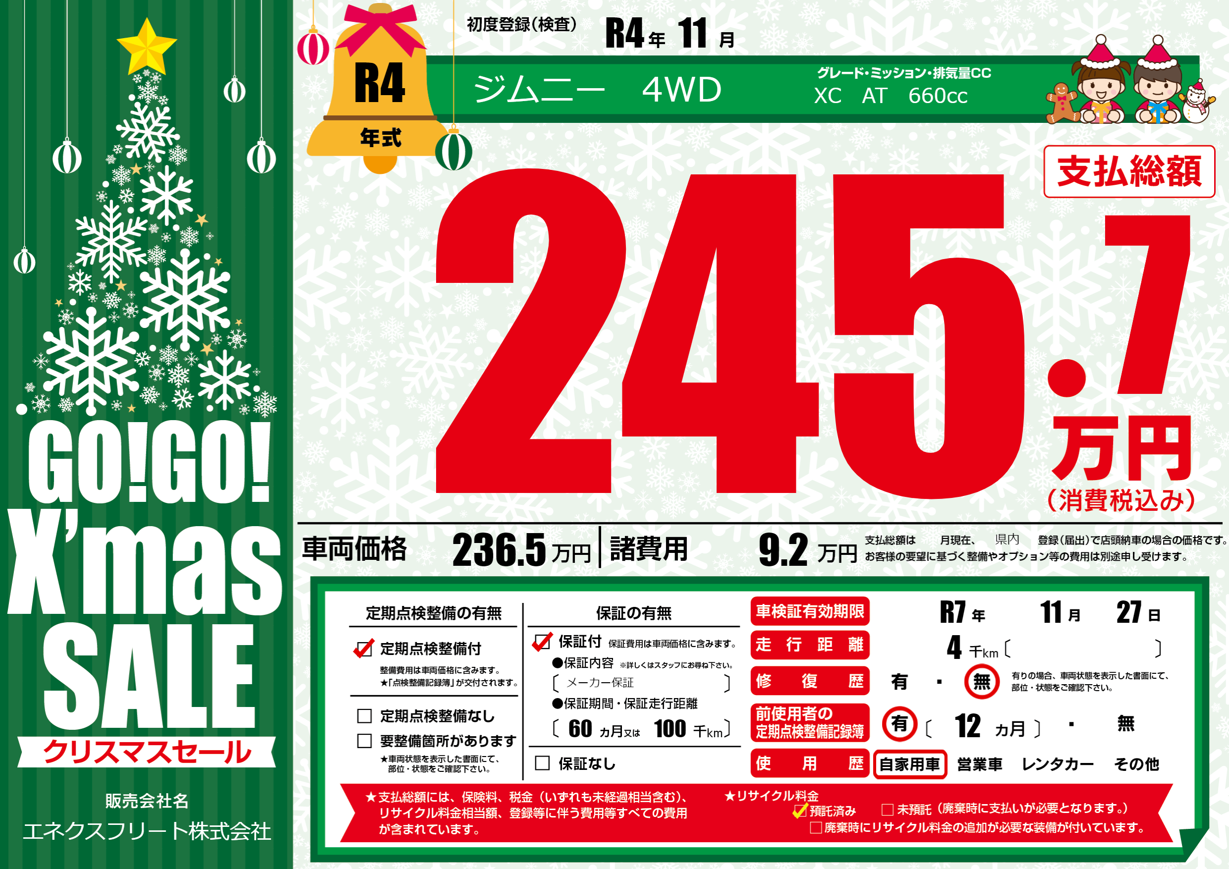 | 走行キロ | 0.4万km | 初年度登録 | R4年11月 |