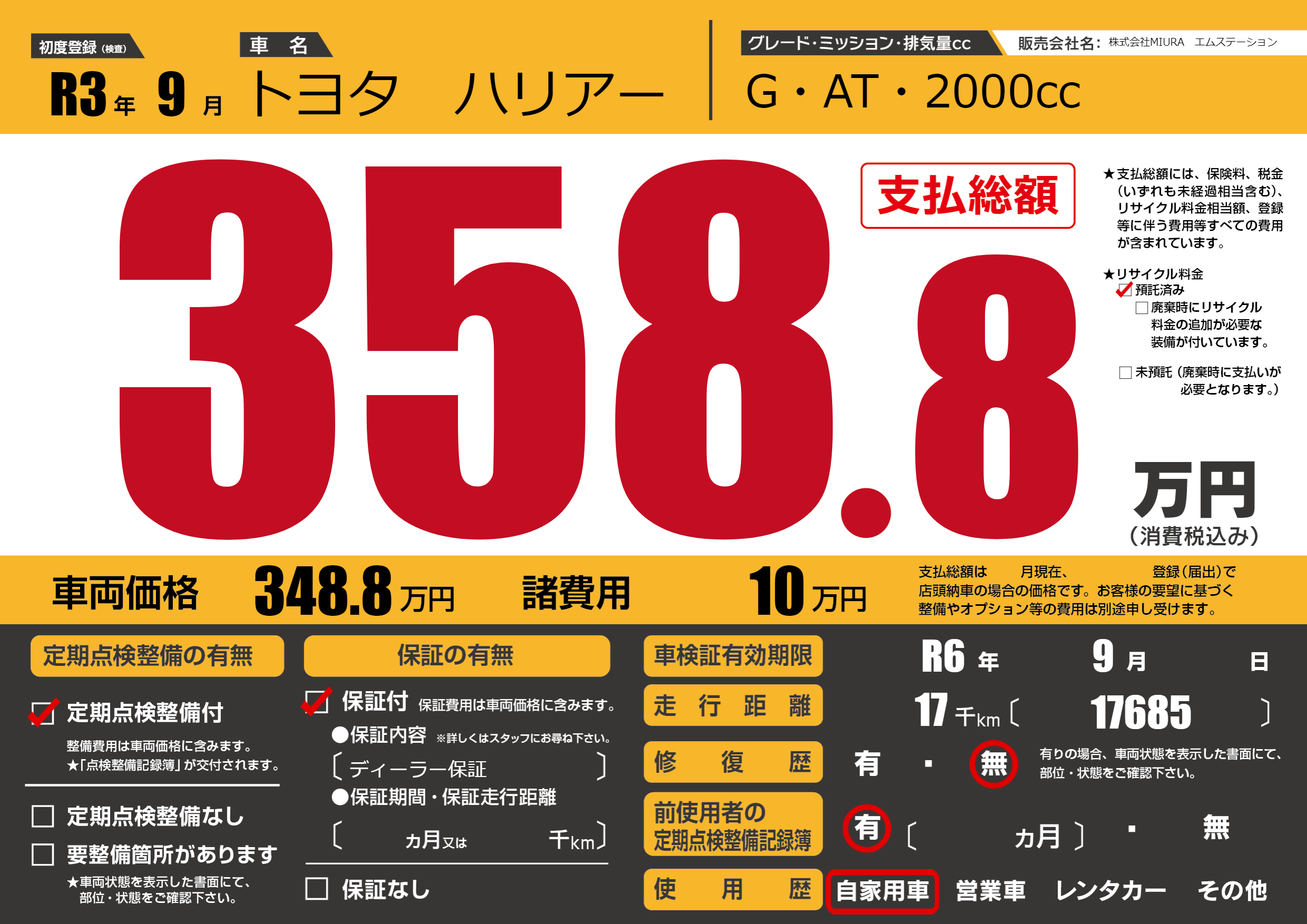 | 車検制限 | R6年 9月 - 日 | ||