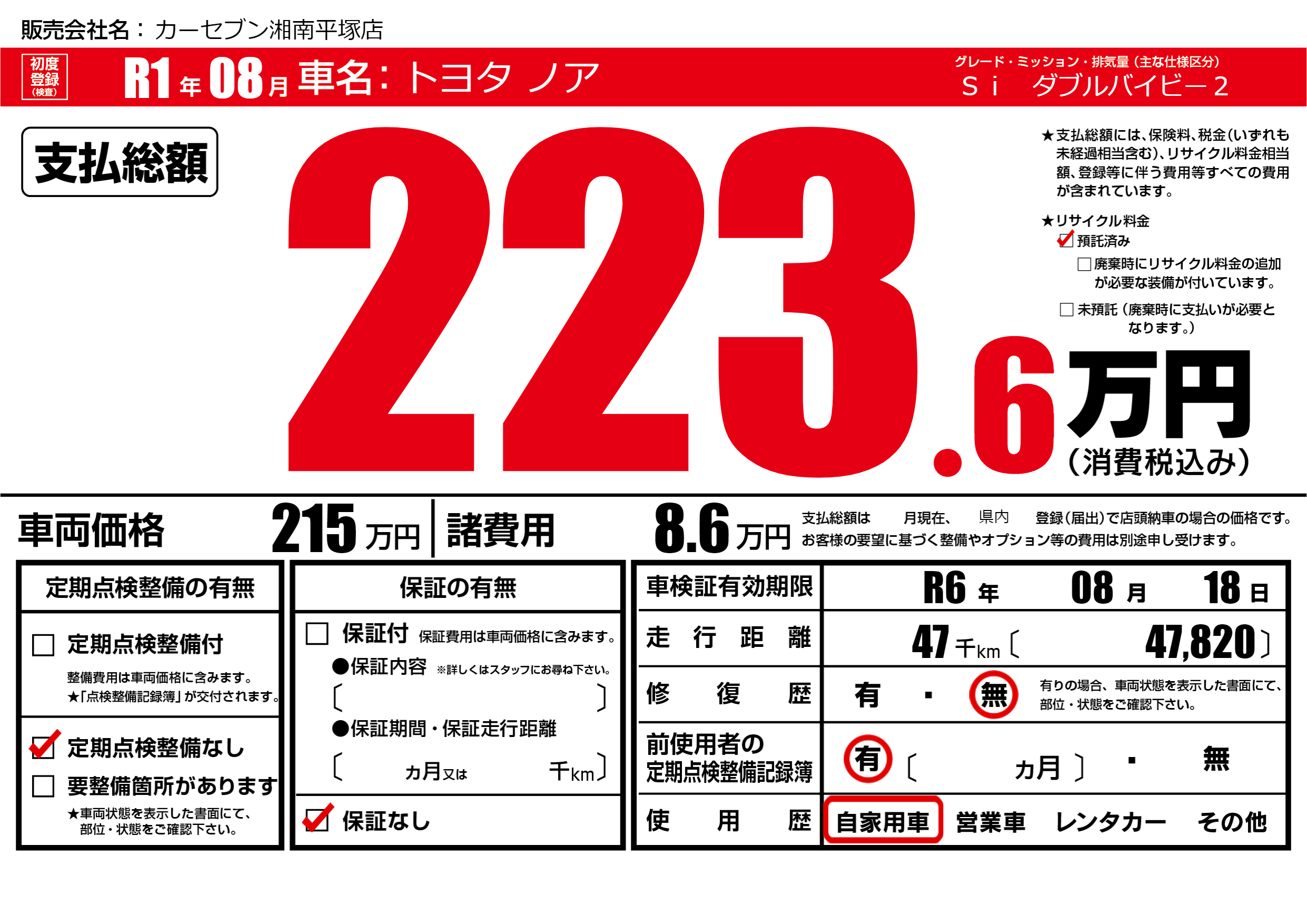 | 走行キロ | 4.7万km | 初年度登録 | R1年08月 |