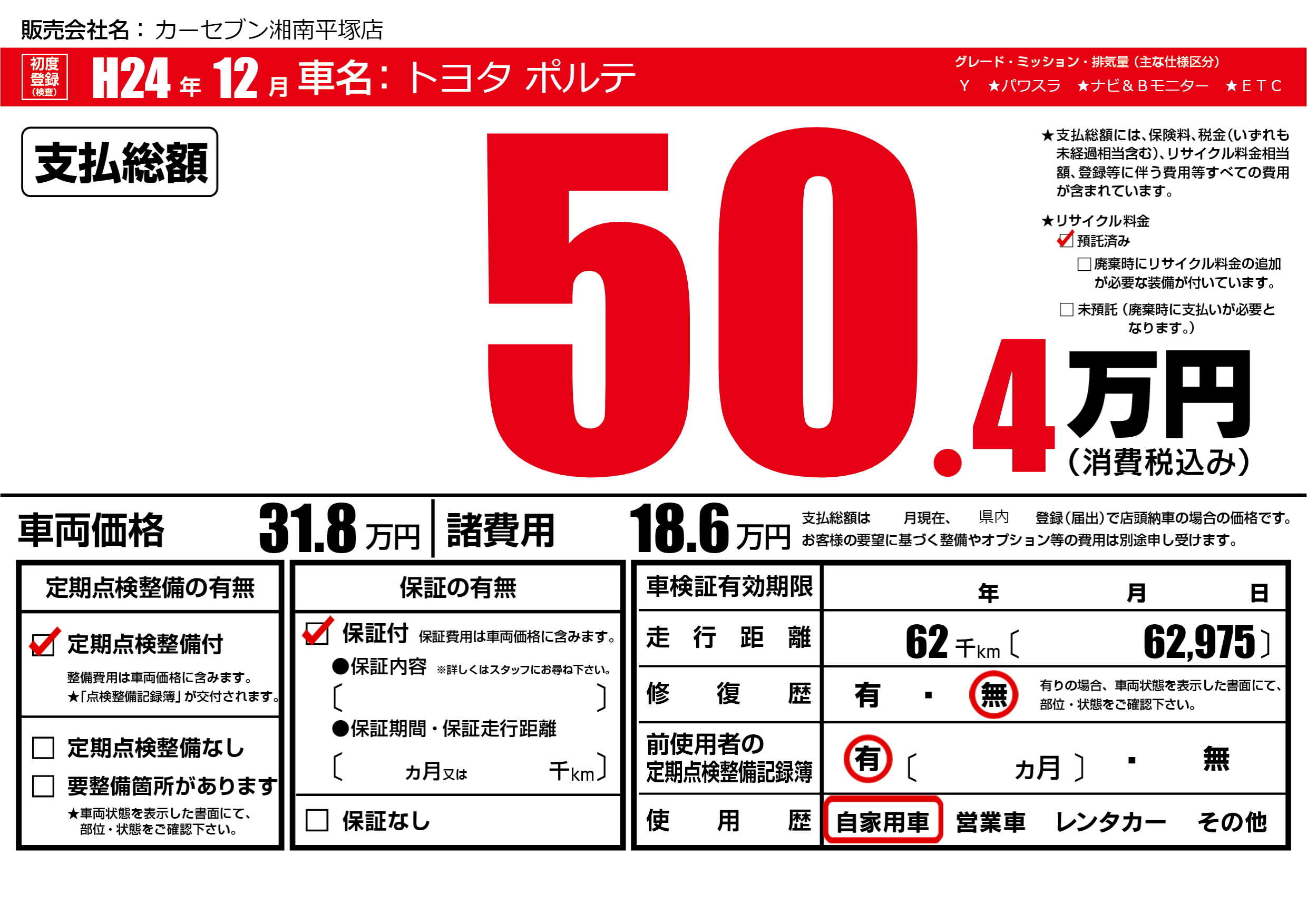 | 定期点検整備 | 定期点検整備あり | ||