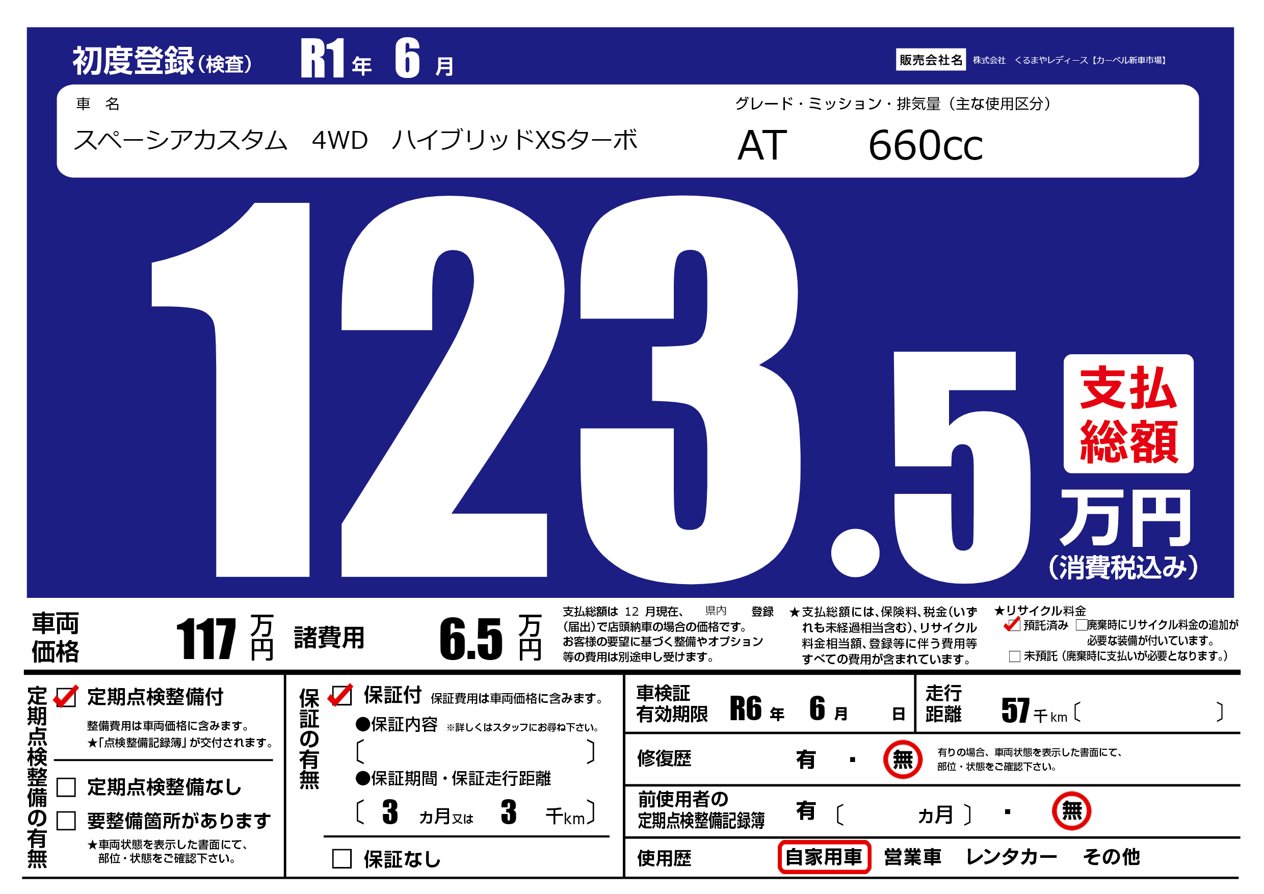 | 走行キロ | 5.7万km | 初年度登録 | R1年6月 |
