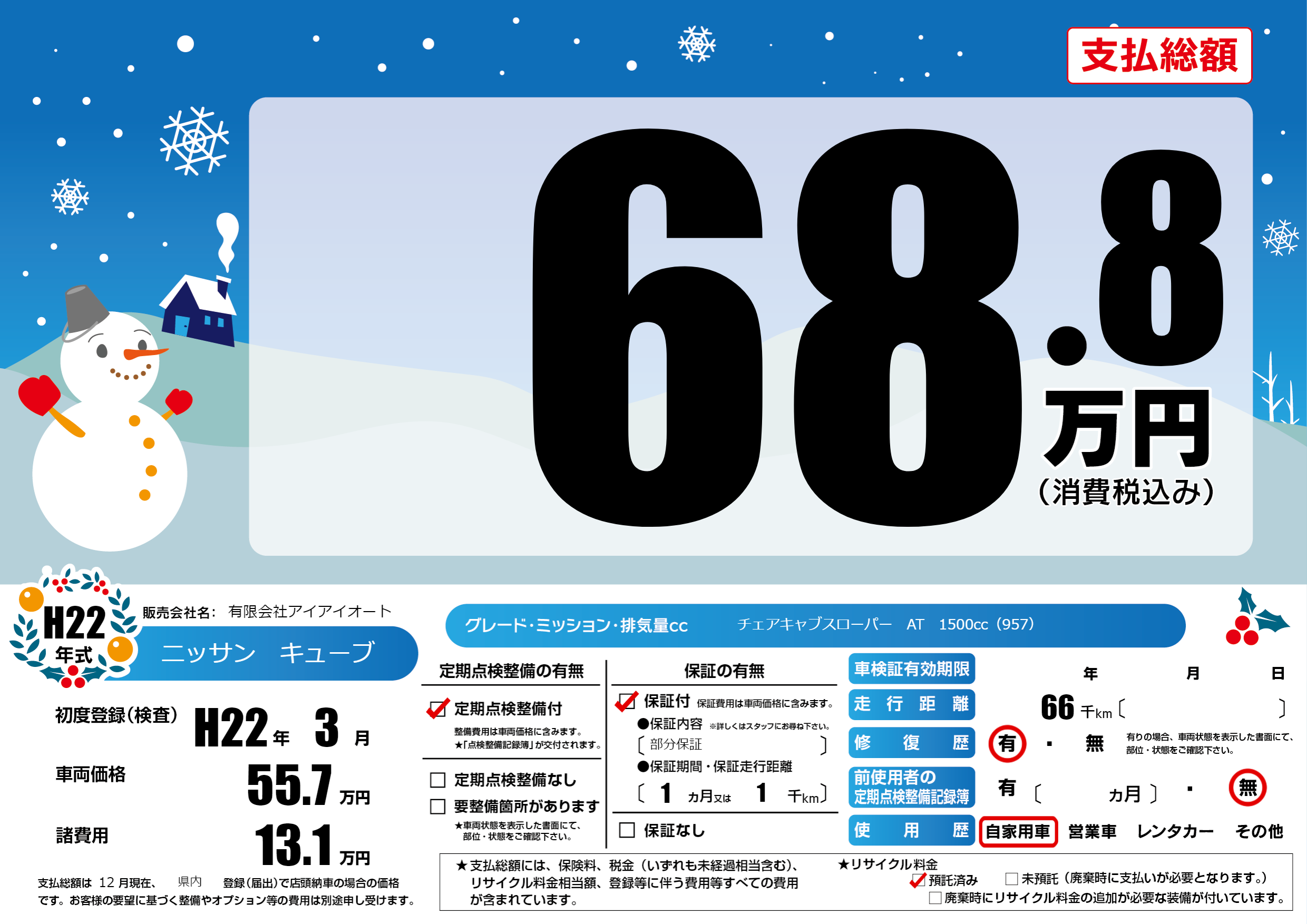 | 車名 | ニッサン キューブ | グレード ミッション 排気量 |