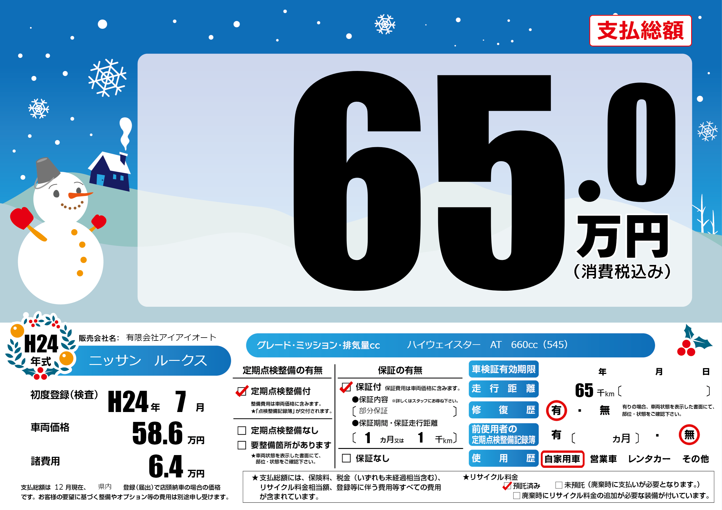 | 走行キロ | 6.5万km | 初年度登録 | H24年7月 |
