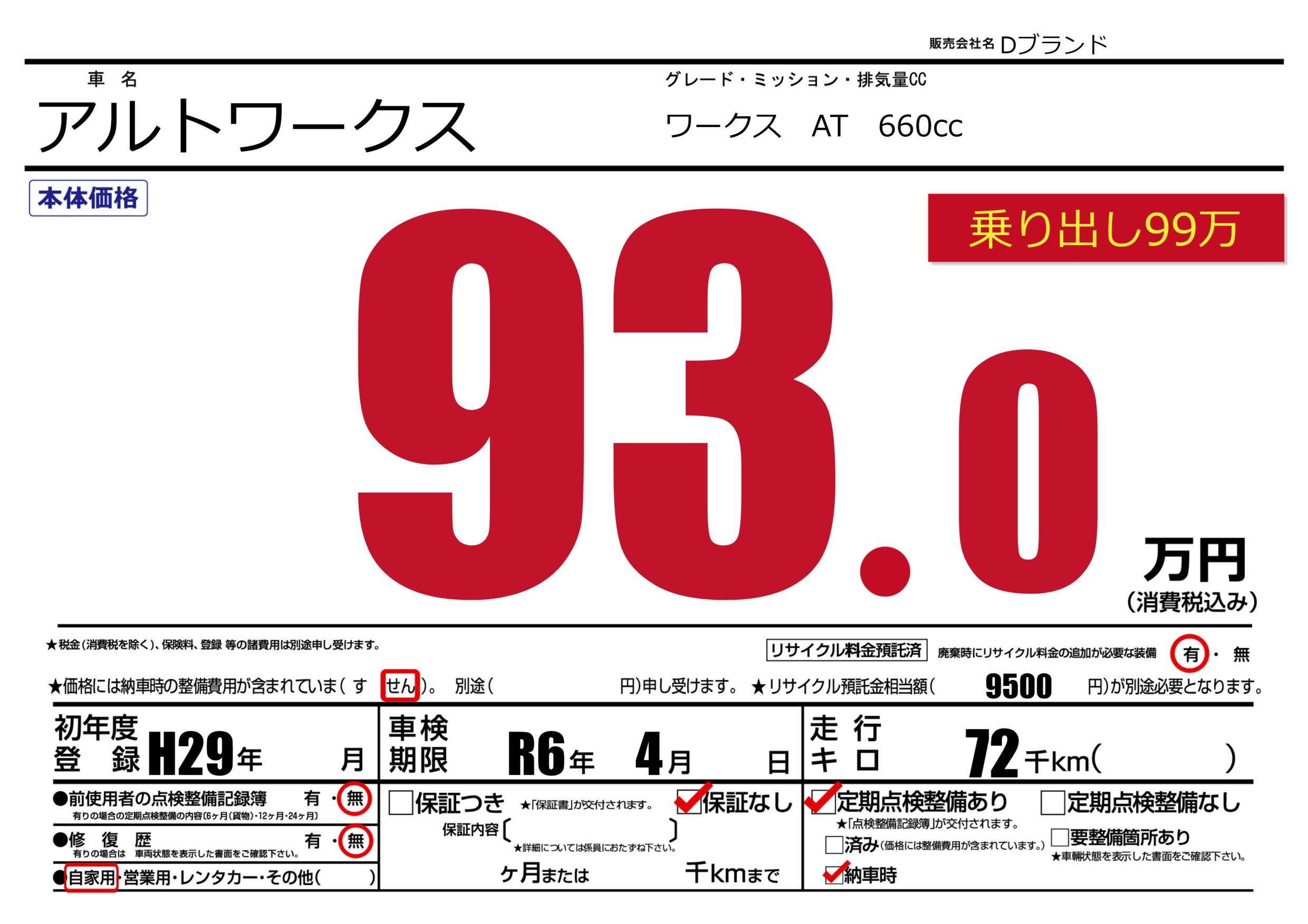 | 車名 | アルトワークス | グレード ミッション 排気量 |