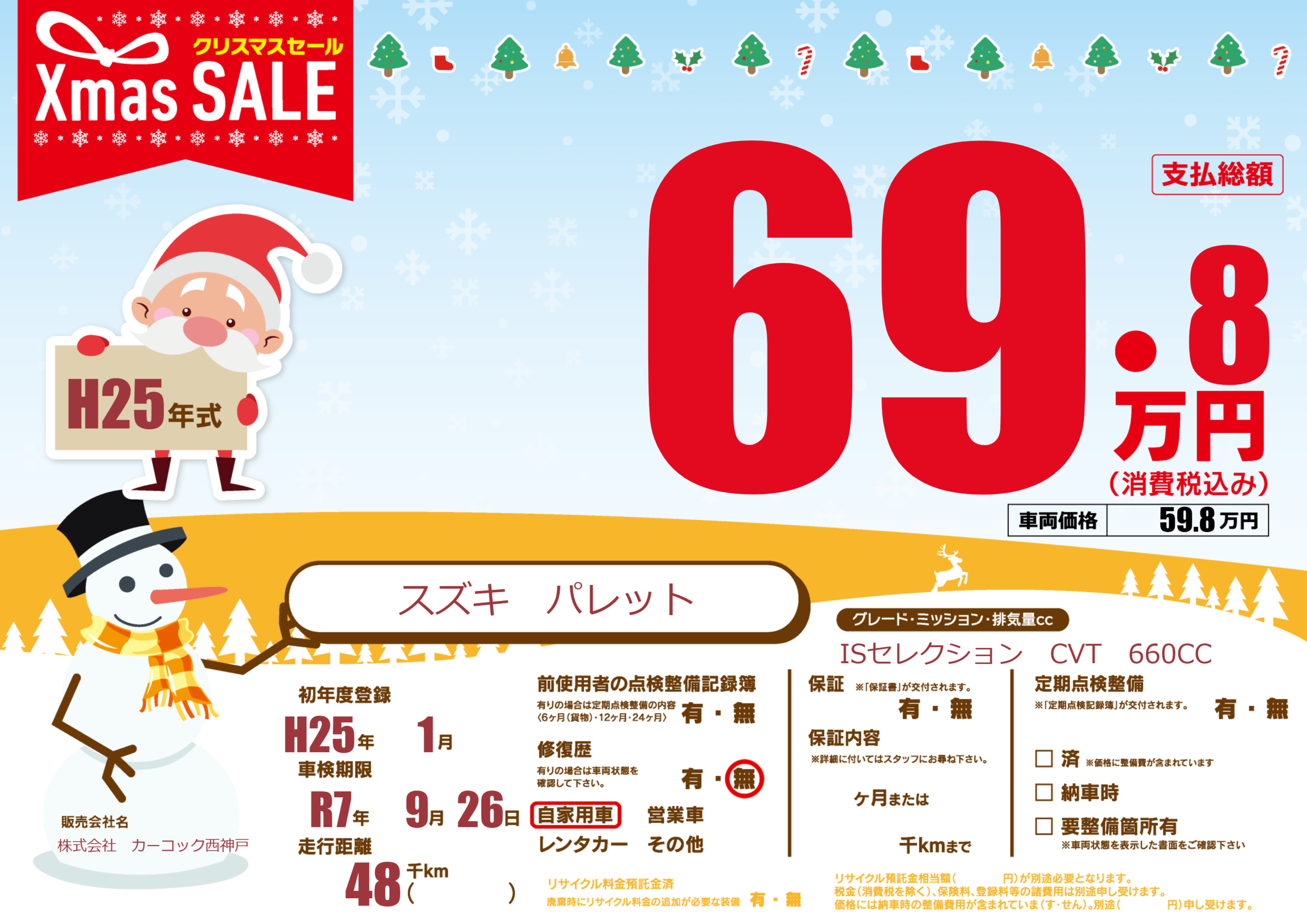 | 走行キロ | 4.8万km | 初年度登録 | H25年1月 |