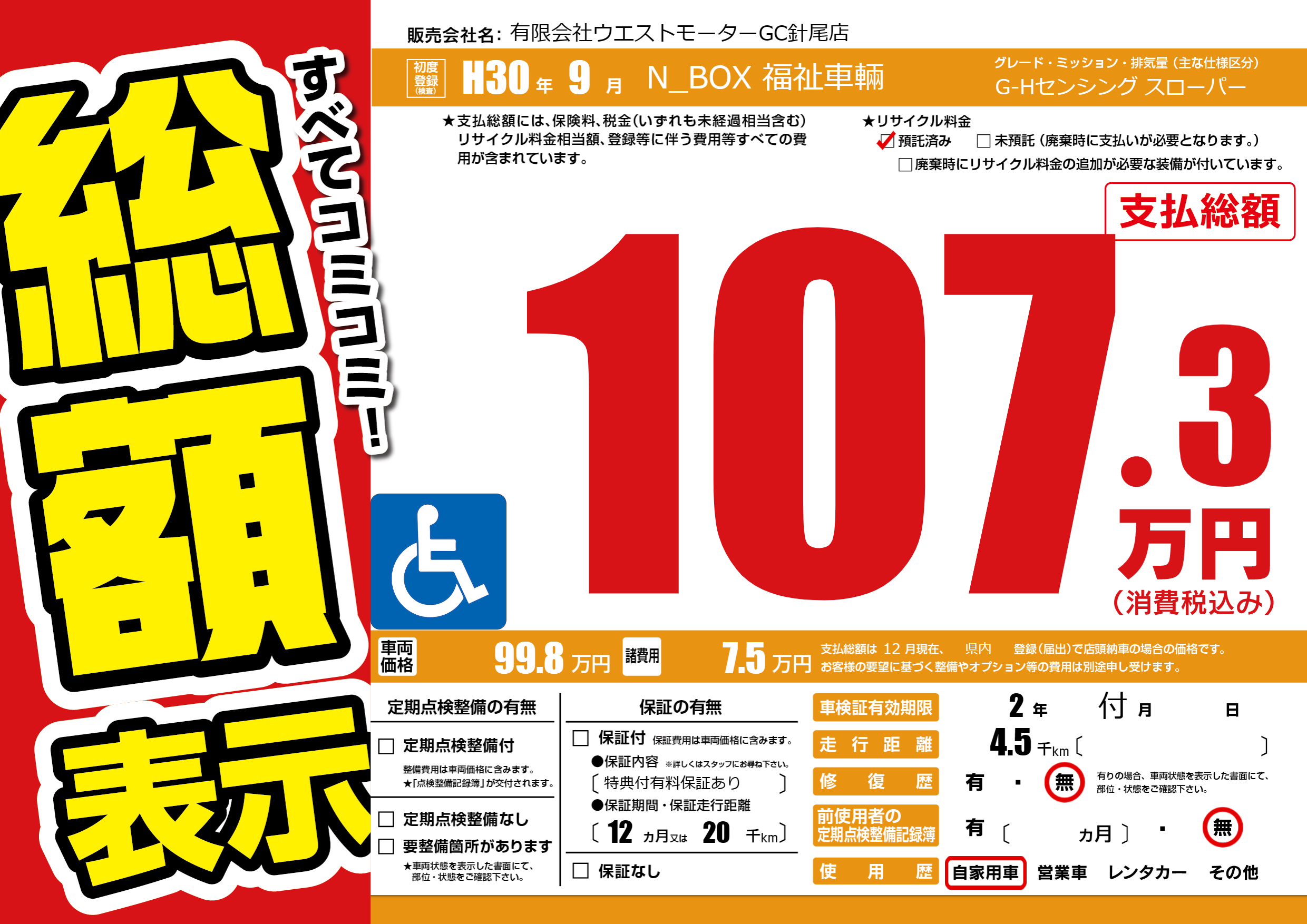 | 車名 | N_BOX 福祉車輛 | グレード ミッション 排気量 |