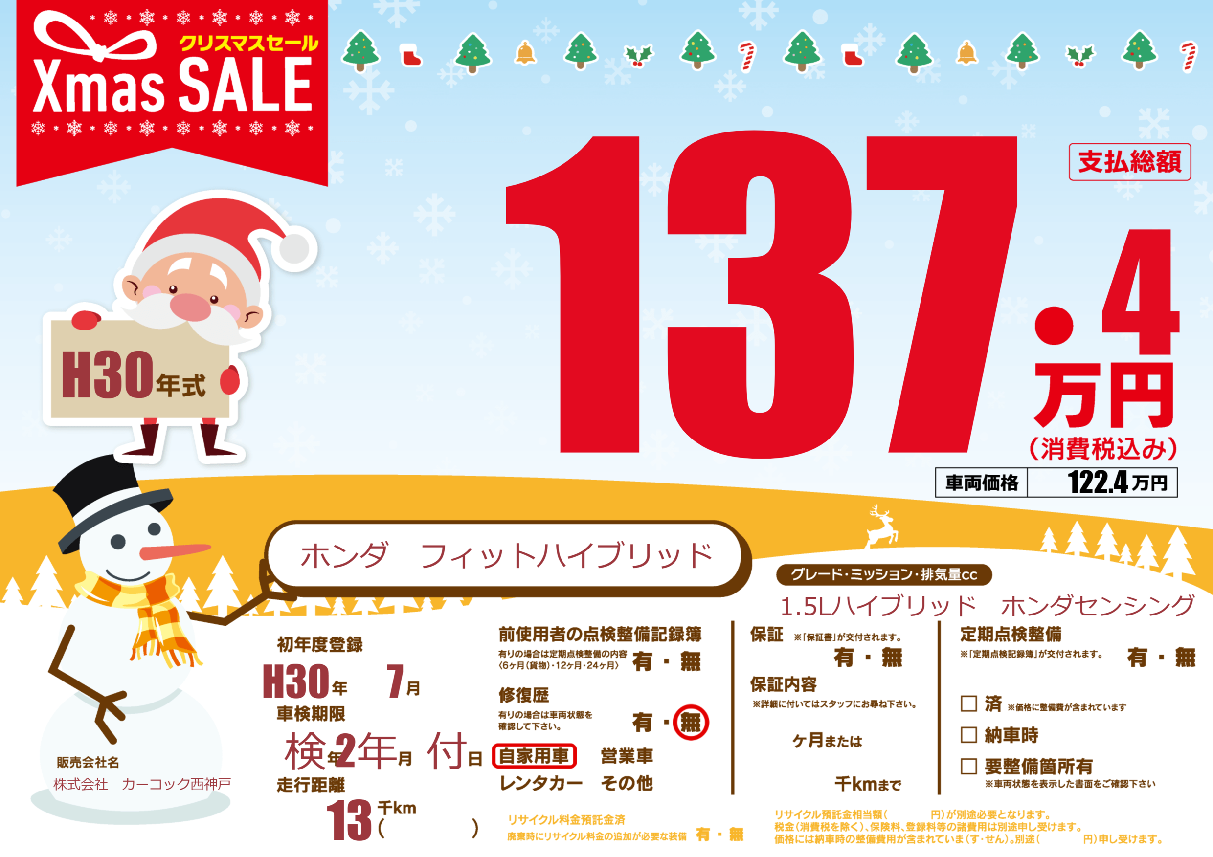 | 走行キロ | 1.3万km | 初年度登録 | H30年7月 |