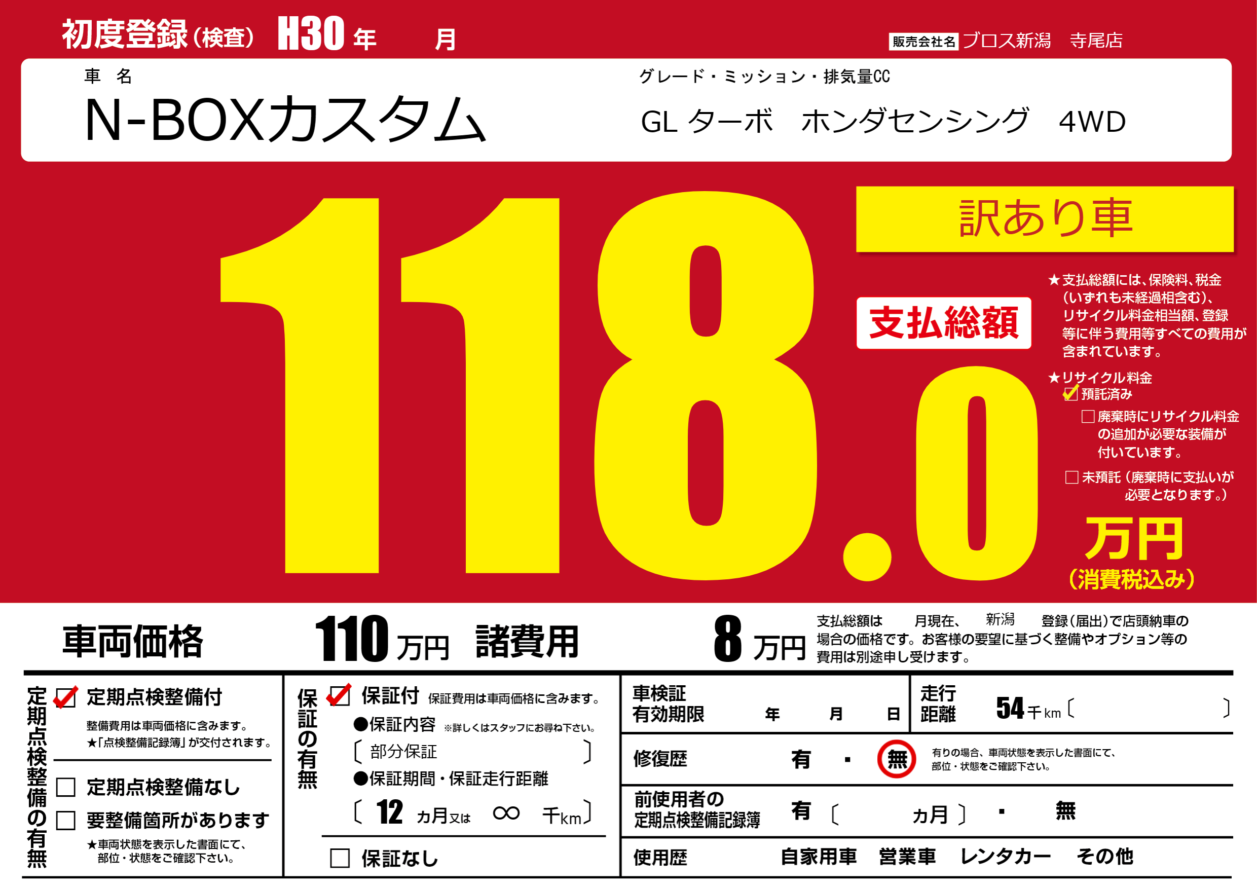 | 走行キロ | 5.4万km | 初年度登録 | H30年---月 |