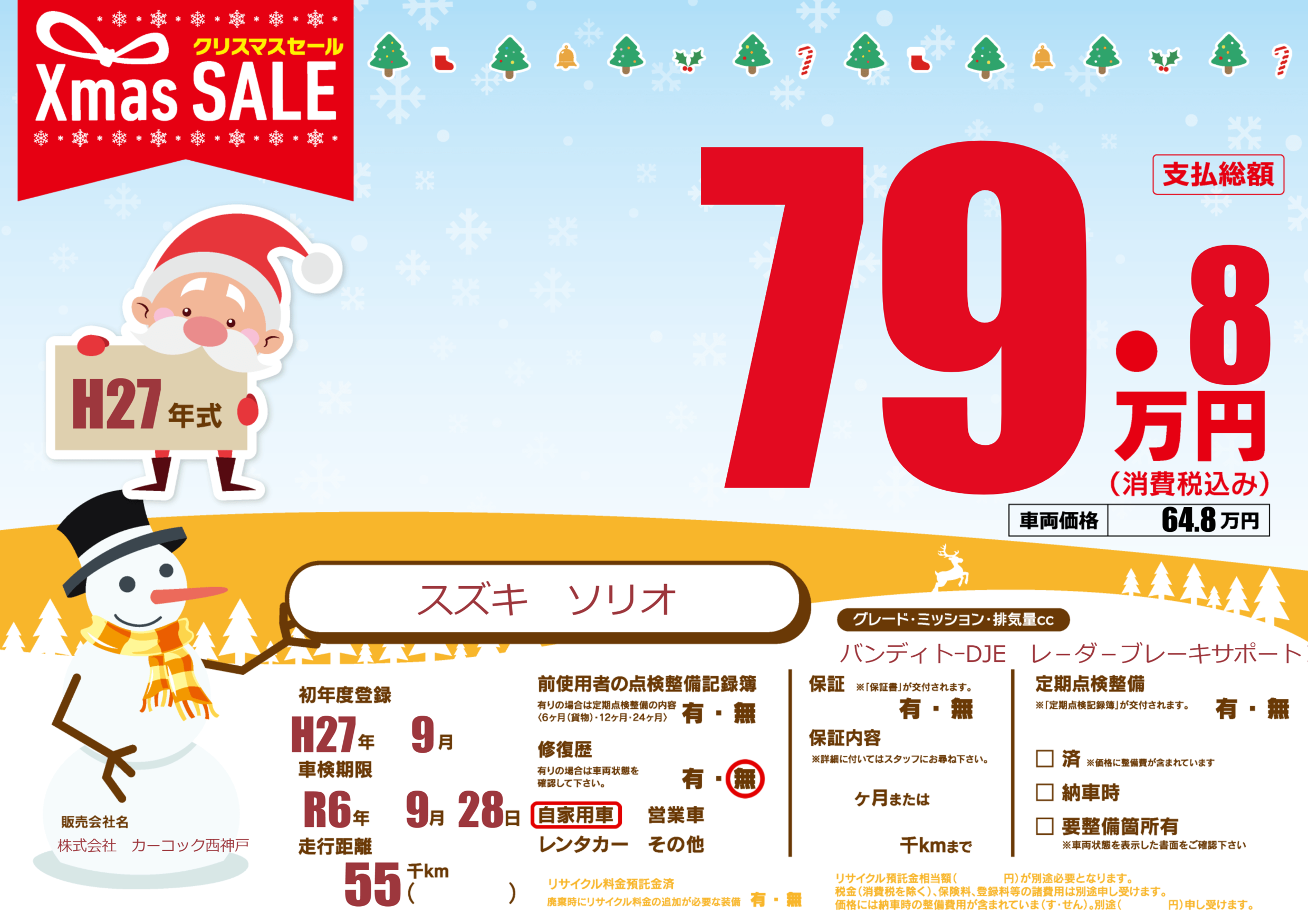 | 走行キロ | 5.5万km | 初年度登録 | H27年9月 |