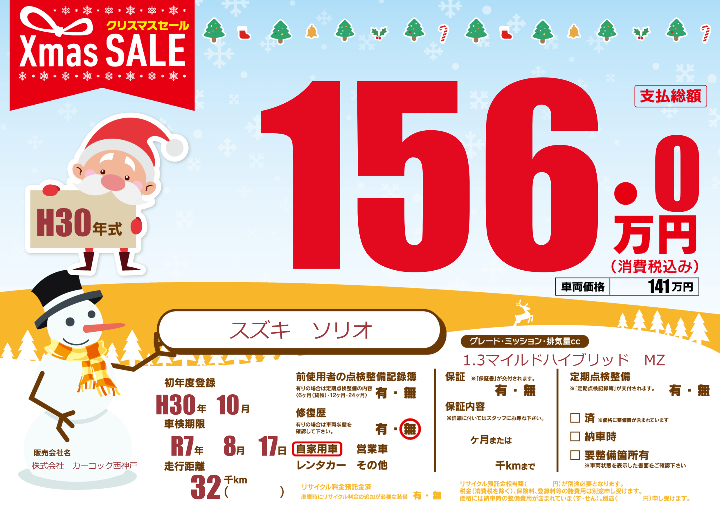 | 走行キロ | 3.2万km | 初年度登録 | H30年10月 |