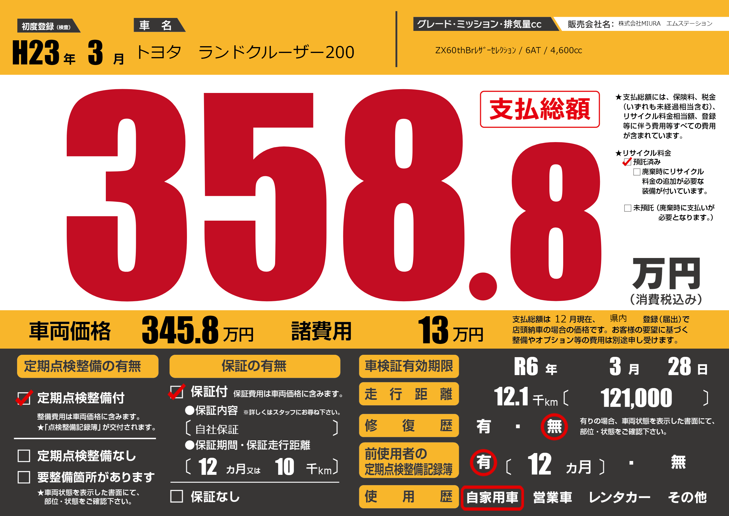 | 車検制限 | R6年 3月 28日 | ||
