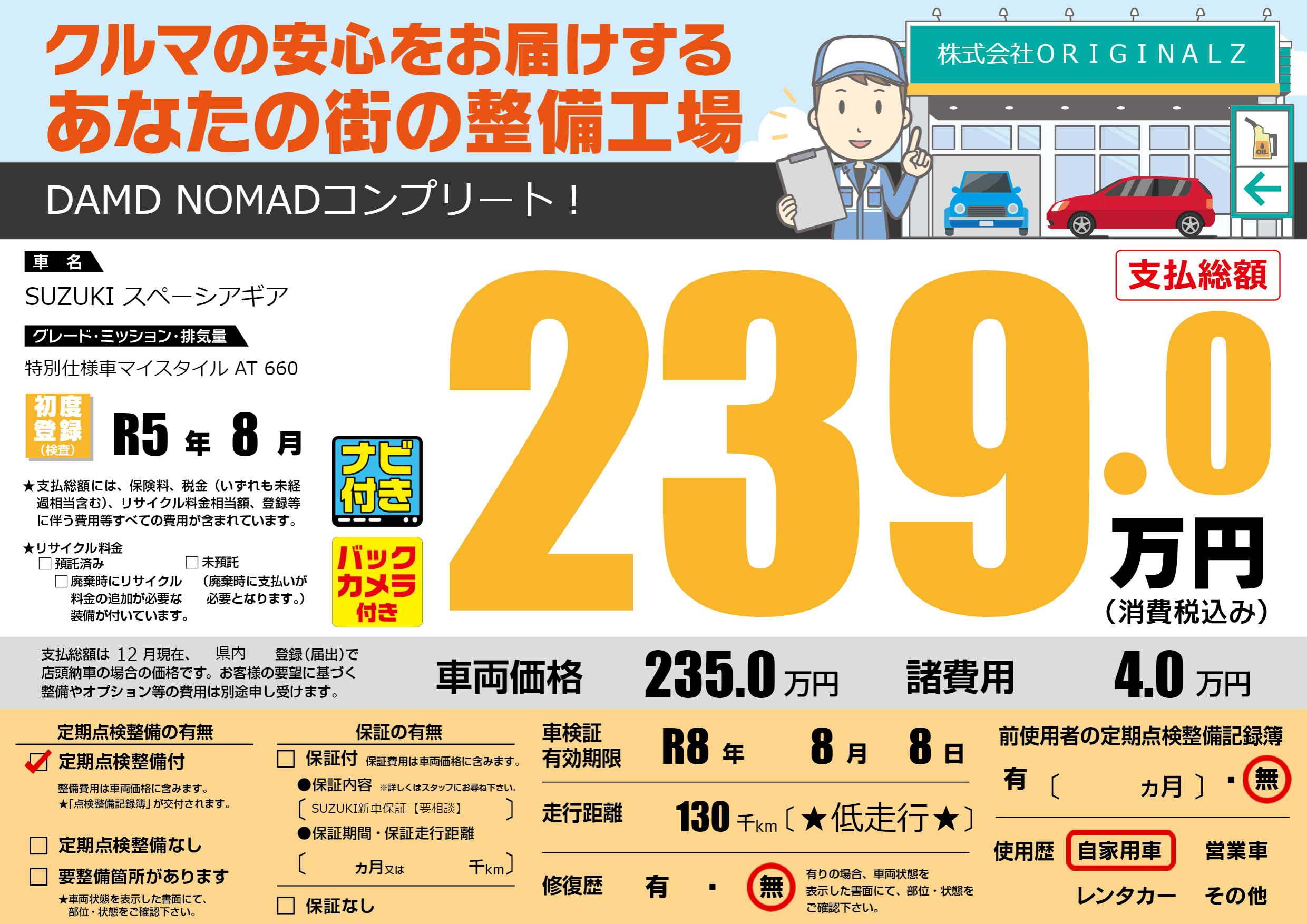 | 走行キロ | 13万km | 初年度登録 | R5年8月 |